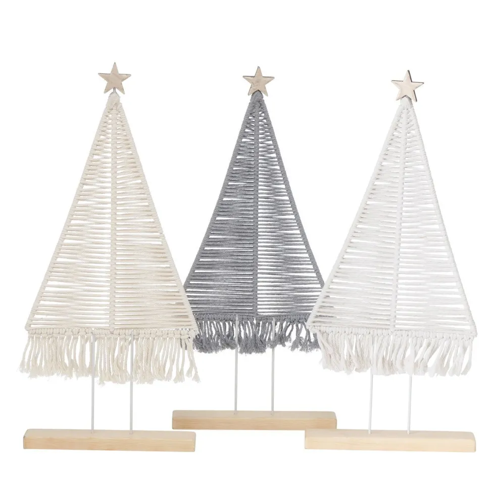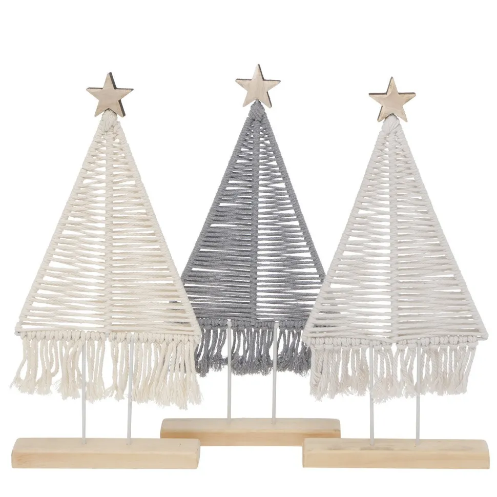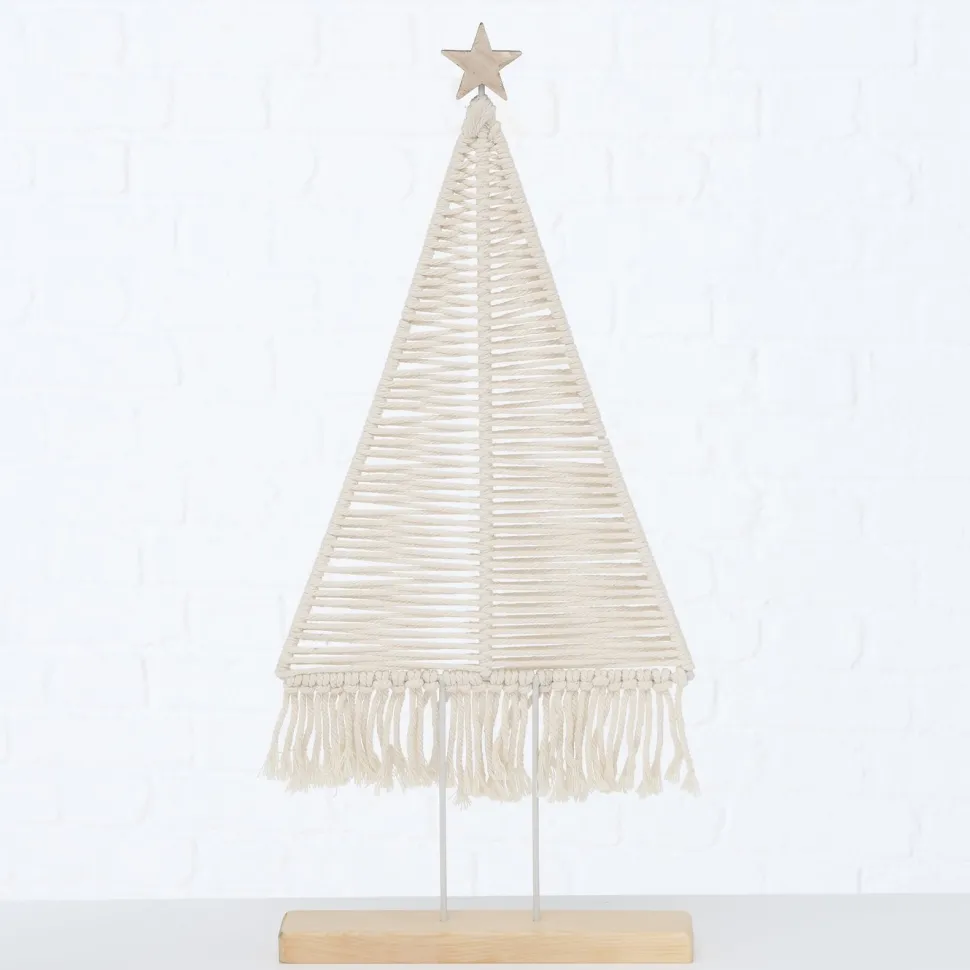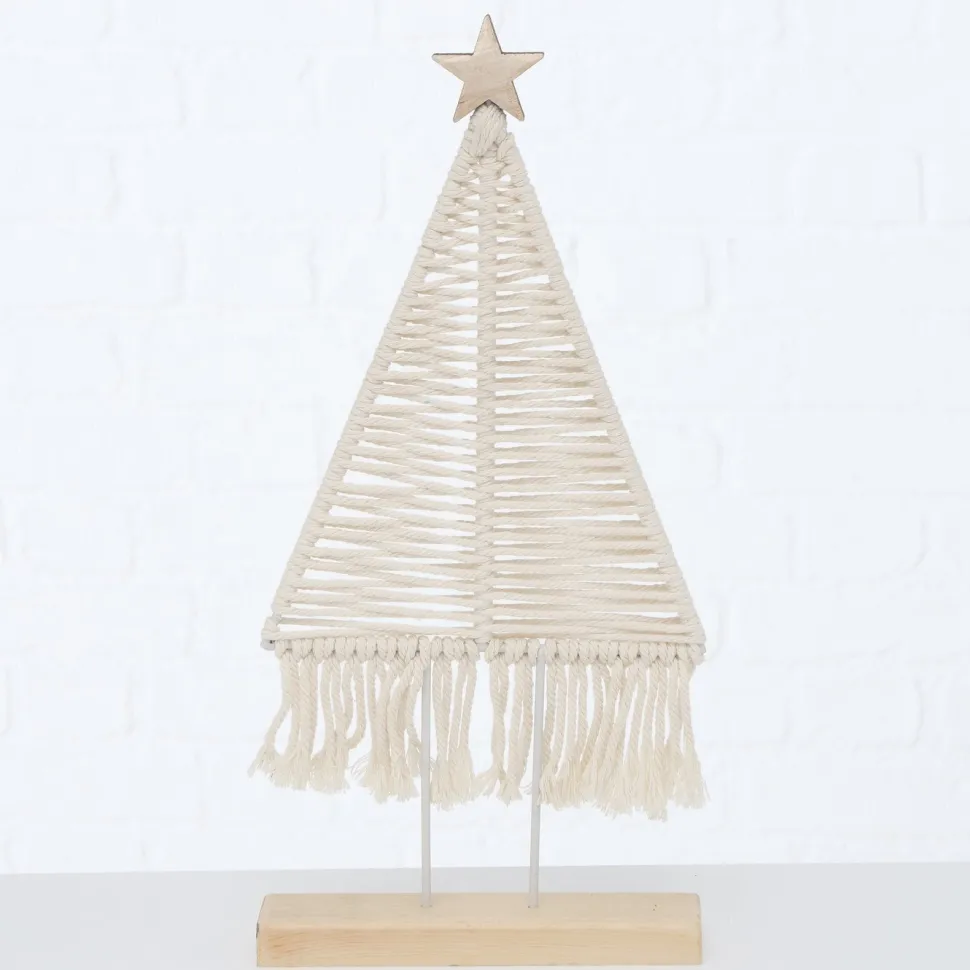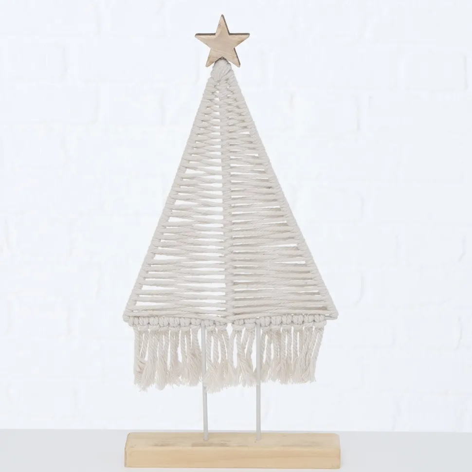 Dekoriere zu Weihnachten ganz modern mit diesem zauberhaften Dekoaufsteller Torvi aus Stoff im 3er Set von Boltze. Der Weihnachtsbaum ist aus weißem, beigem und grauem Stoff geknüpft und mit einem Stern aus Holz an der Baumspitze versehen.