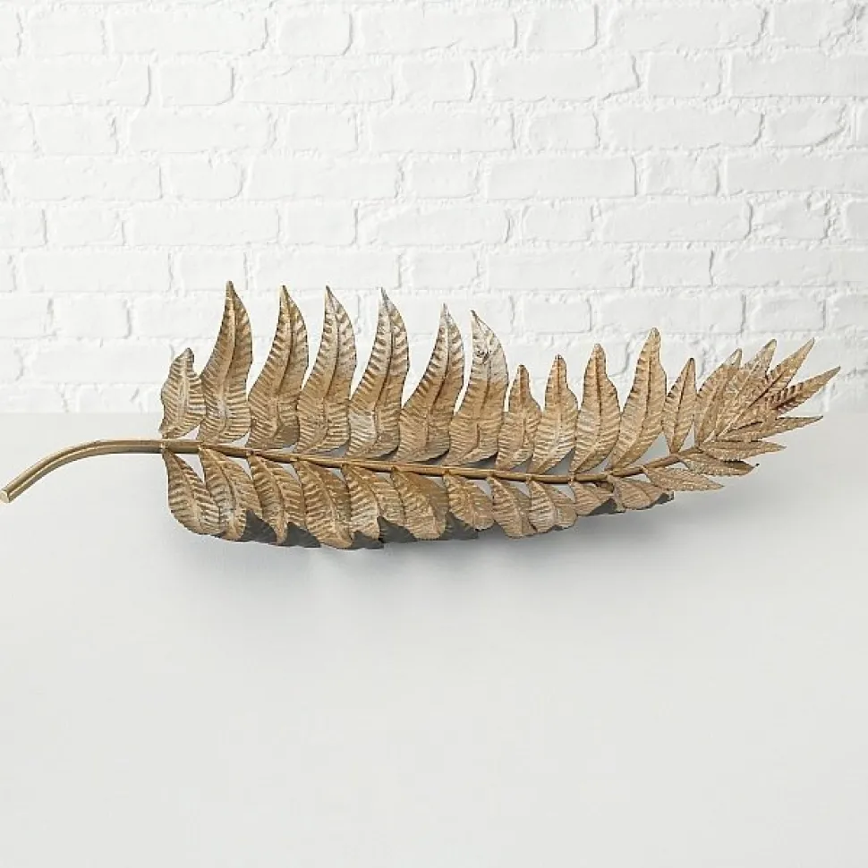 Filigran und verspielt bringt diese Dekoschale Ferna konstruierte Natürlichkeit in deine vier Wände. Platziere die Schale in Blattform auf der noch einsamen Kommode oder auf dem Wohnzimmertisch. Auch in der Vitrine oder im Regal zieht die Dekoschale neugierige Blicke auf sich und überzeugt stilvoll in goldener Eisenmontur.