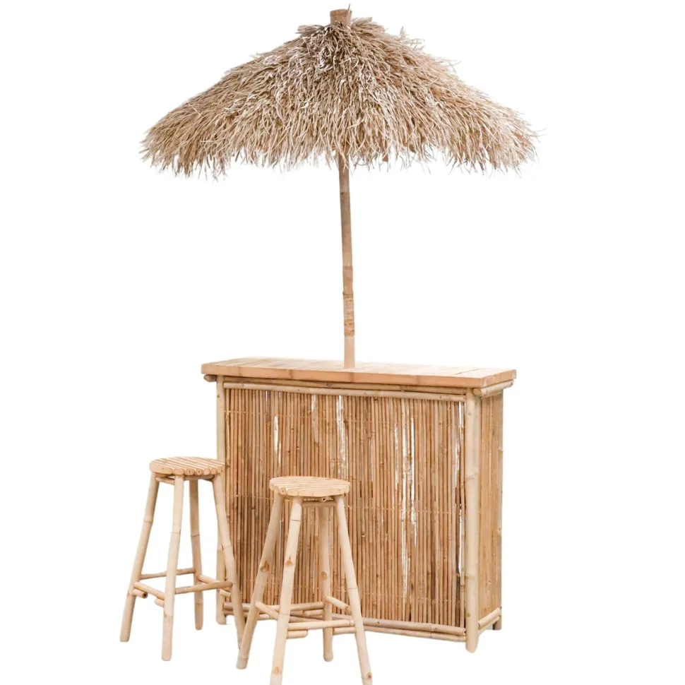 Handgearbeitet, 4 Teilig, Bar, Sonnenschirm und 2 Barhocker