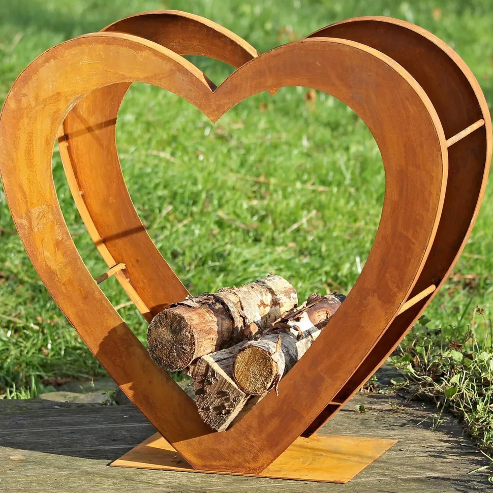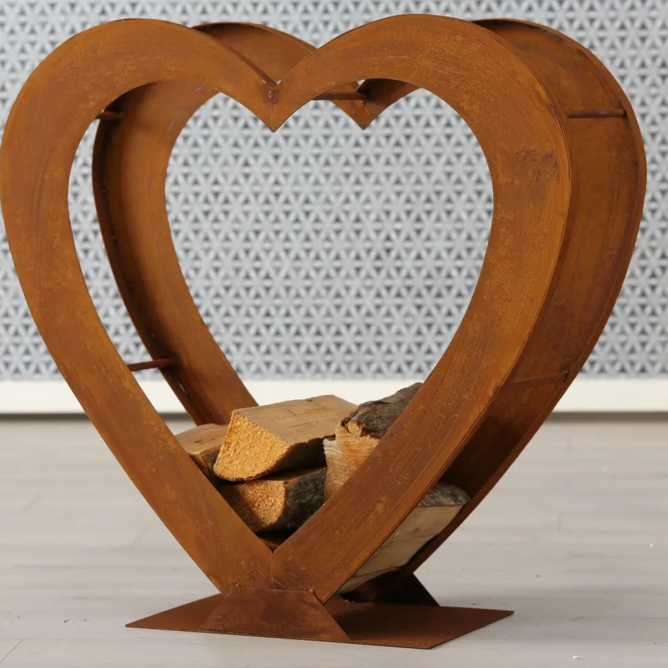 Kaminholzregal Tobias in Herzform im trendigen Edelrost Look von BOLTZE