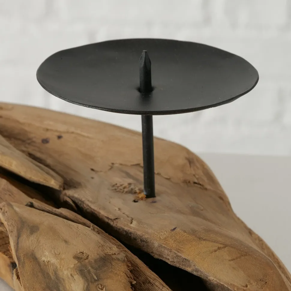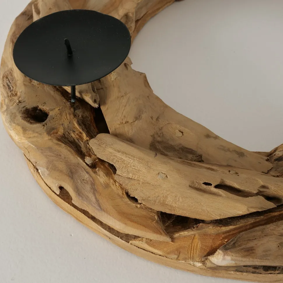 Dieser schöne Kerzenleuchter Palu von Boltze macht sich wunderbar als Adventskranz für die kalte Jahreszeit. Er besteht aus wunderschönem Teakholz und vier Haltern für Stumpenkerzen aus schwarz lackiertem Eisen. Lasse den Kranz für sich wirken oder bestücke ihn mit Tannengrün, Weihnachtskugeln oder Lametta.
