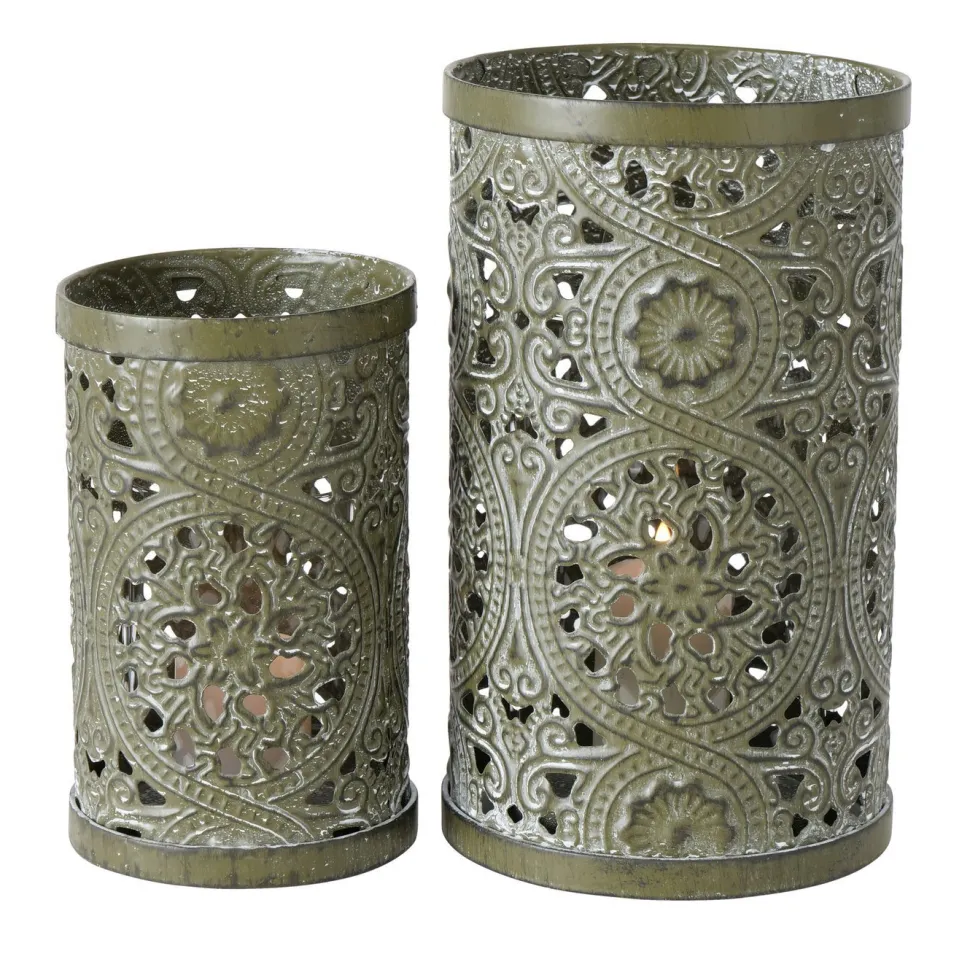 Diese Indoor Windlichter kreieren bei Kerzenschein wunderschöne Schattenmuster und das sorgt wahrlich für eine angenehme Atmosphäre an deinem Rückzugsort. Die zwei Windlichter passen in jeden Raum, auf jede Kommode und auf jedes Regal und sehen wunderbar in Kombination mit anderen Dekoartikeln aus.