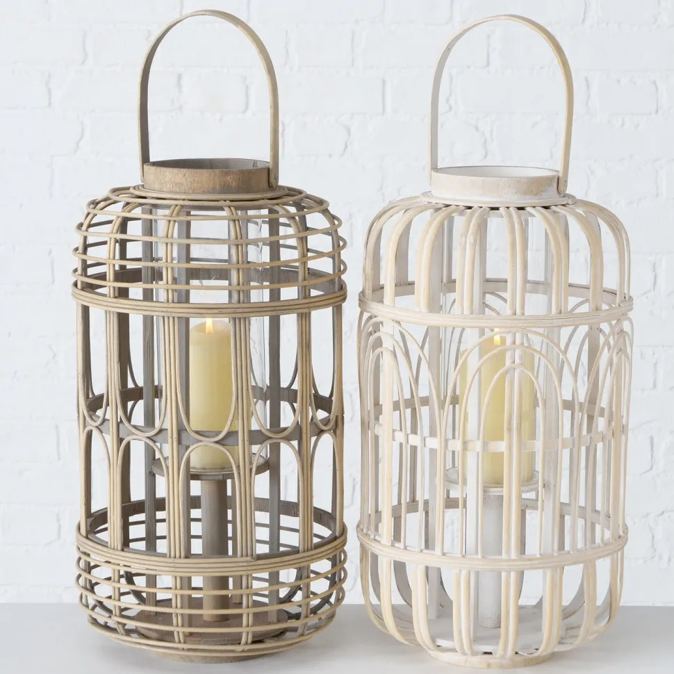 Diese zauberhafte Laterne Holly aus Bambus im 2er Set von Boltze sieht wunderschön auf deiner Kommode, deiner Fensterbank oder im Eingangsbereich aus. Die Bambusstreben wurden kunstvoll zu einem schönen Muster verflochten und mit einem warmen beige und braun versehen.
