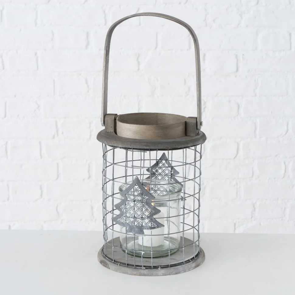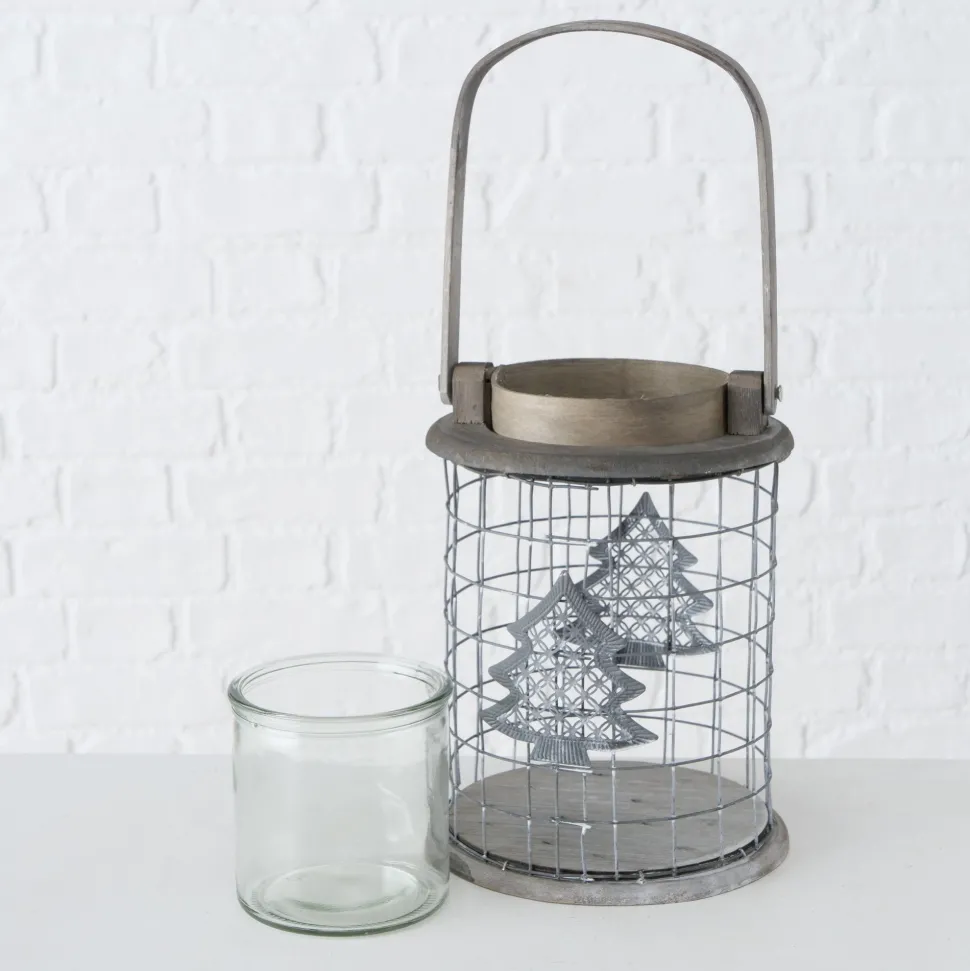 Bei dieser Laterne können Sie verschiedene Dekorationen vornehmen. Die Tannenbäume welche auf den Gitterstäben befestigt sind, können entweder durch ein Teelicht zur Geltung kommen oder Sie füllen einfach Tannenzweige in das Innere.
