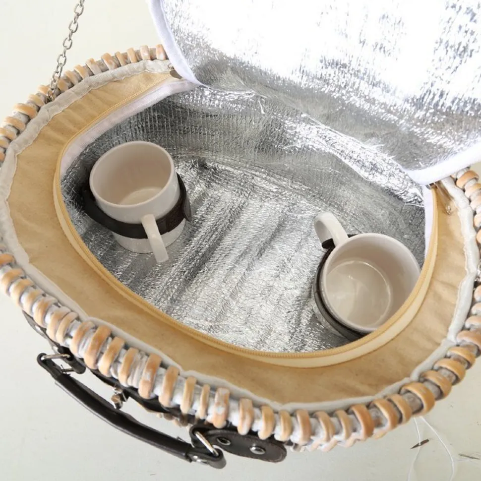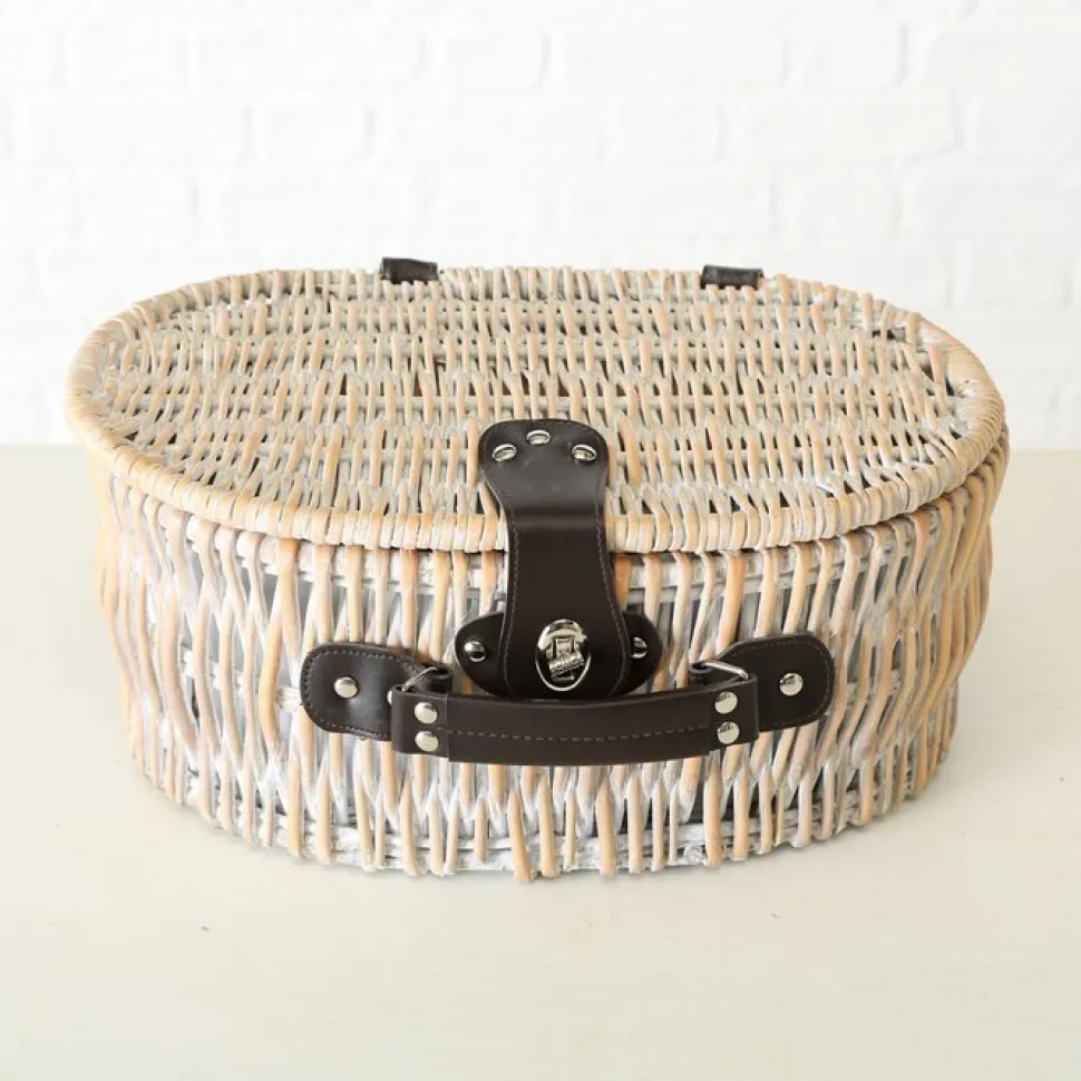 Dieser tolle Picknickkorb aus der Serie White Garden von BOLTZE verhilft dir und deinem Partner zu mehr Zweisamkeit. Ausgestattet mit einem kompletten Geschirr und Besteck Set für 2 Personen und einer Kühltasche könnt ihr eure liebsten Leckereien in diesen Korb legen und euch auf zu einem schönen Ort zum picknicken machen. Bei beiden Versionen ist größtenteils das gleiche Zubehör in leicht unterschiedlichem Design dabei. Der runde Korb beinhaltet zwei Becher, während der eckige zwei Wein bzw. Sekt Gläser vorweist und zusätzlich Salz und Pfeffer Streuer.