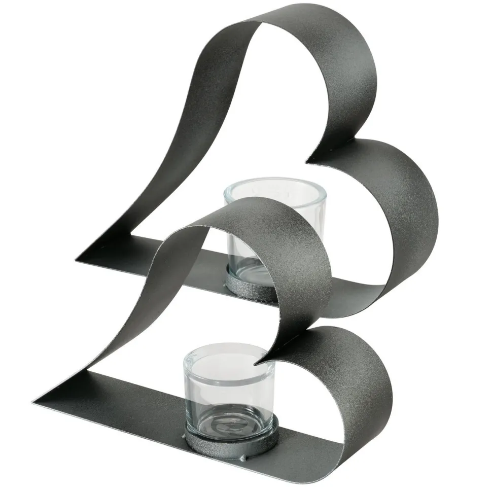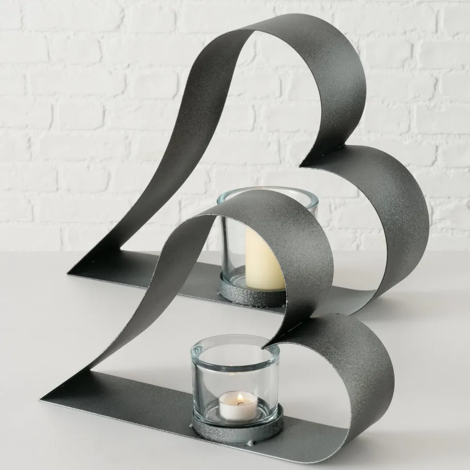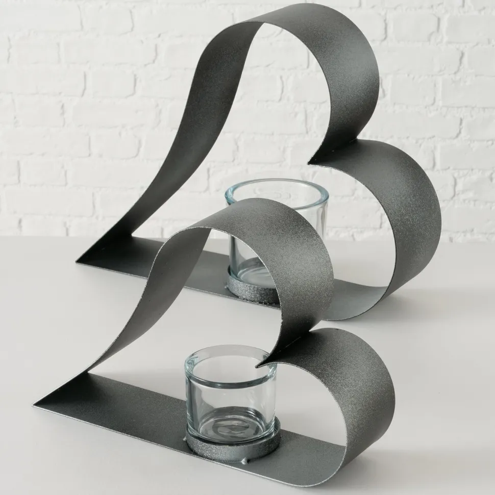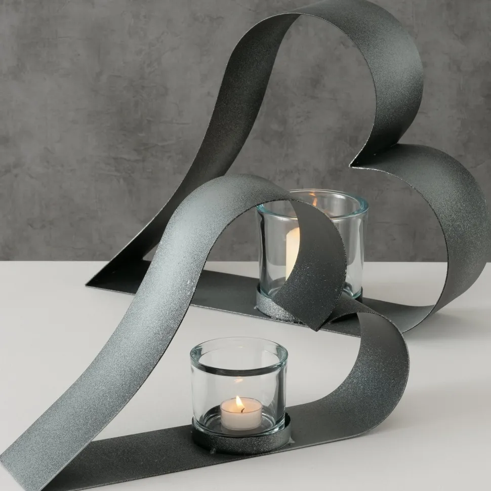 Schöne Teelichthalter Valeska im 2er Set in Herzform aus Eisen und Glas von BOLTZE. Stelle ein Teelicht in den Teelichthalter und schaffe eine gemütliche und wohnliche Atmosphäre. Das Herz lässt sich wunderbar zusammen oder getrennt voneinander in der Fensterbank, einem Regal oder auf dem Tisch platzieren und geschmackvoll mit anderen Gegenständen kombinieren.