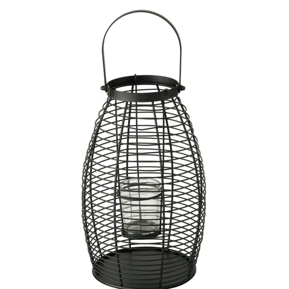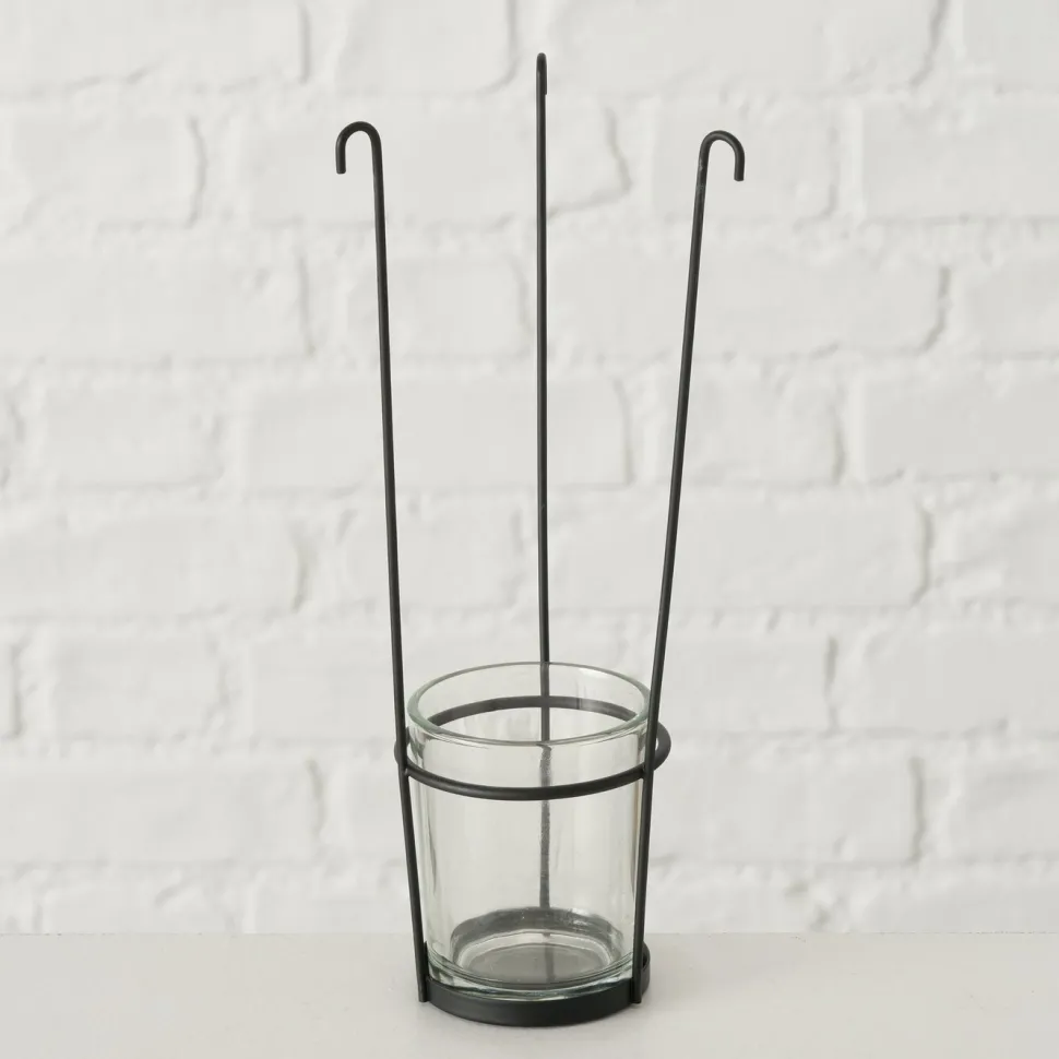 Es besteht aus Eisen und hat eine matte Optik. Das Windlicht hat einen Einsatz für eine Kerze und kann wunderbar im Wohnzimmer, im Wintergarten oder im Schlafzimmer mit anderen modernen Wohn-Accessoires kombiniert werden.