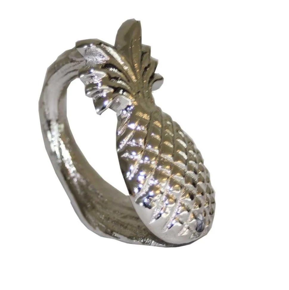 Diese fruchtige Dekoration eignet sich, wenn du beim nächsten festlichen Anlass etwas Besonderes zum Rollen deiner Servietten verwenden möchtest. Dieser Serviettenring „Ananas“ von byRoom besteht aus Aluminium und ist mit einer stilvoll gestalteten Ananas versehen. Dadurch sorgst du für das gewisse Etwas, wenn du deinen Tisch das nächste mal deckst.
