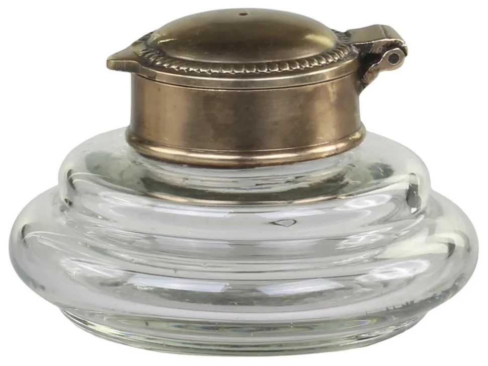 Neben dem goldenen Eisendeckel trägt die Glasstruktur zum besonderen Design dieser Vintage Mini Vase bei.