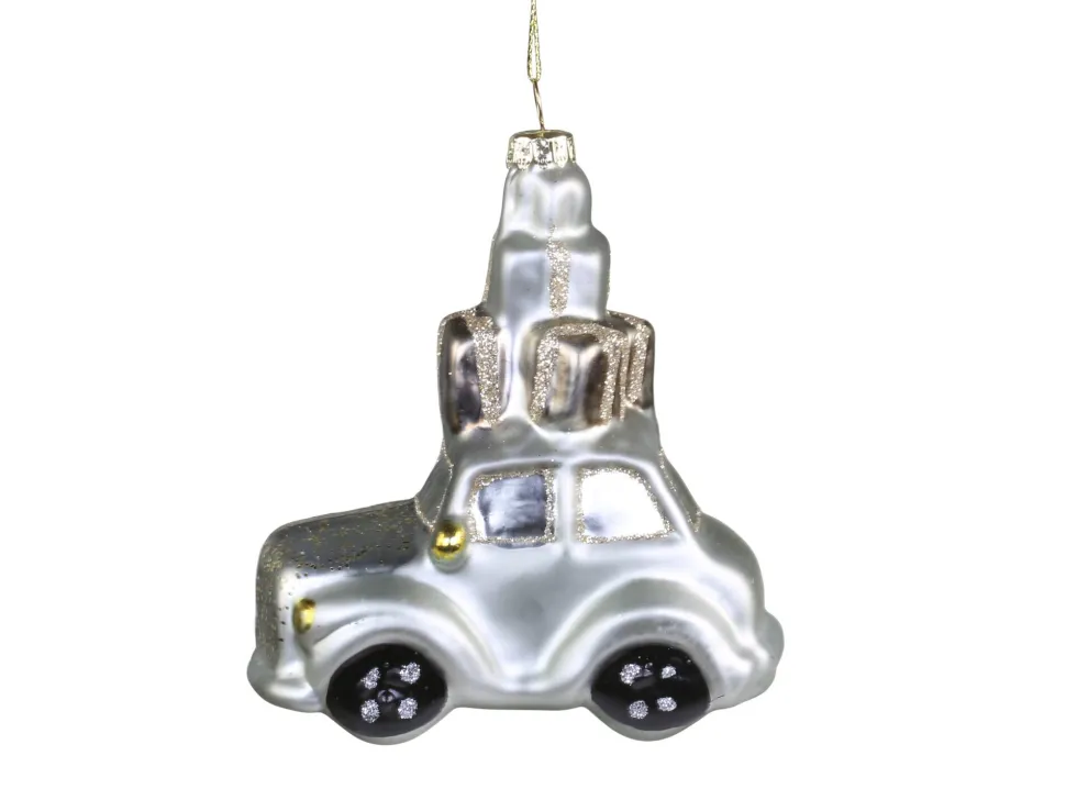 Dieses zauberhafte Auto mit Geschenken zum Aufhängen von Chic Antique lässt Vorfreude auf die Weihnachtszeit aufkommen. Hänge das Ornament an den Weihnachtsbaum, in den Türkranz oder lege es in eine Dekoschale zusammen mit Tannengrün und Kerzen.