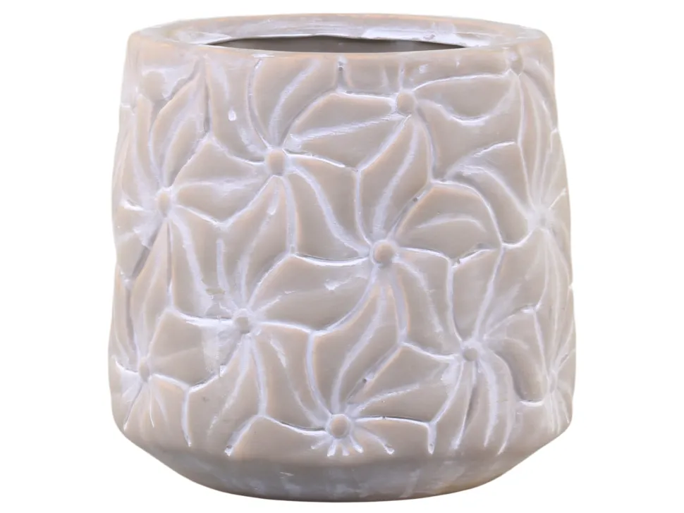 Edel, cremefarben oder grau und einfach wunderschön gemustert! Dieser Blumentopf Colmar von Chic Antique fällt durch sein elegantes Blumenmuster ins Auge und ist toll für farbige und grüne Pflanzen geeignet.