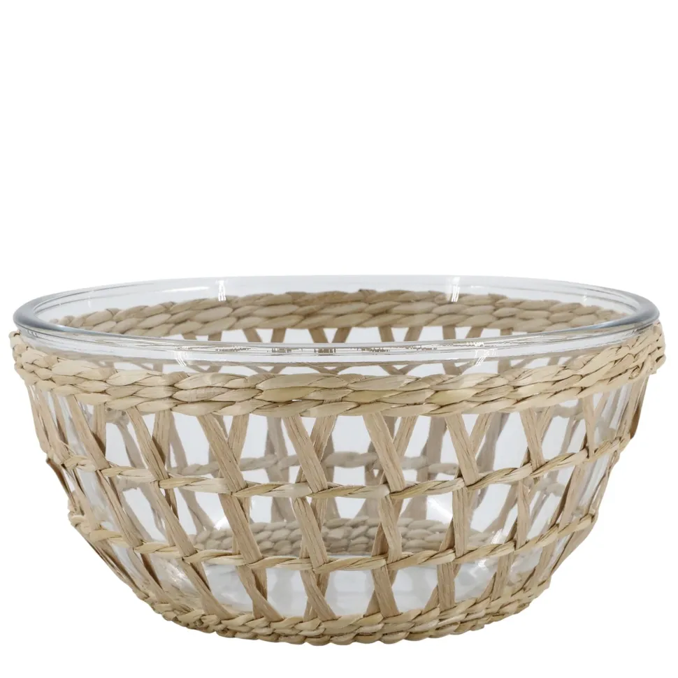 Glasschüssel mit Flechtkorb von Chic Antique, Dänemark.