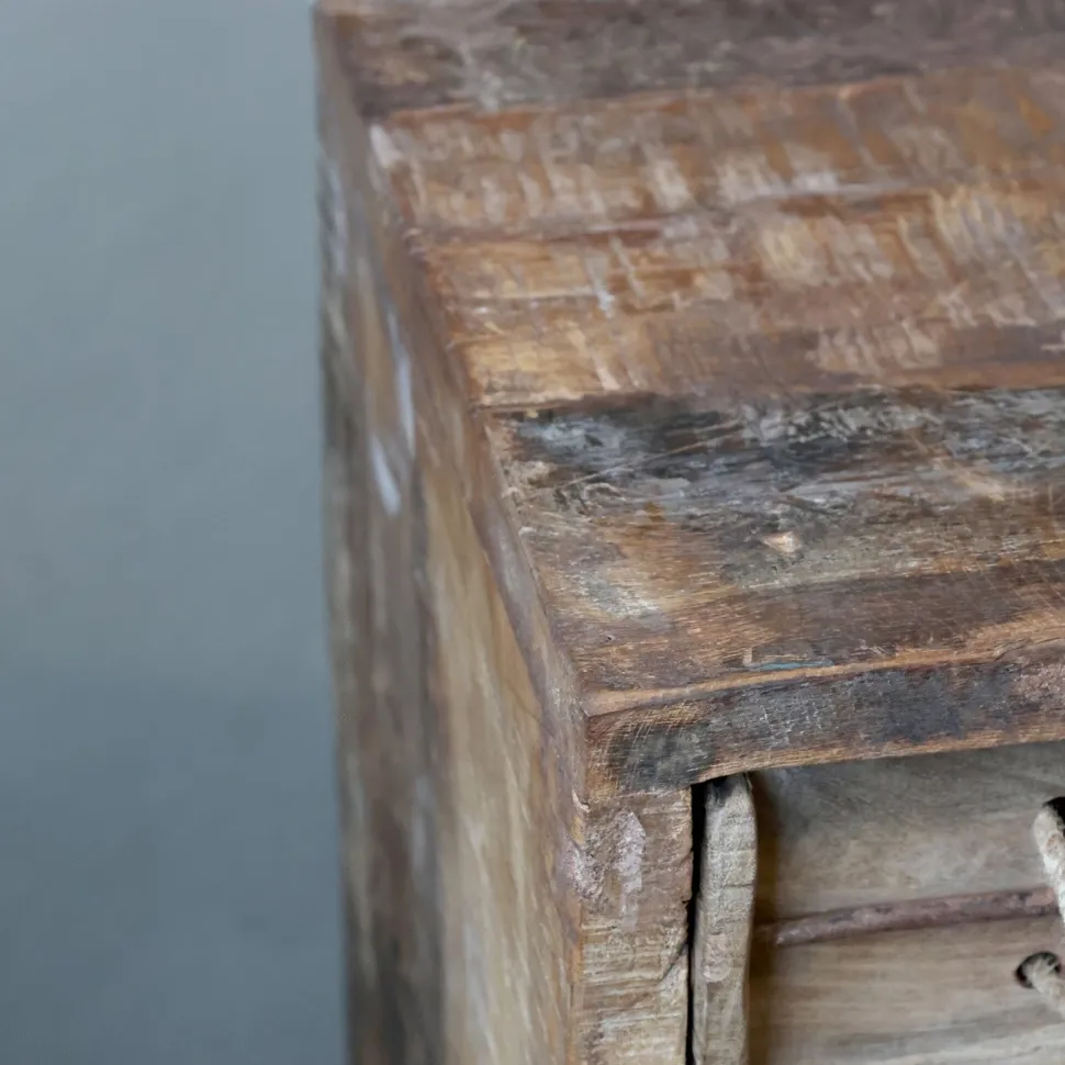 Einzigartige Kommode aus der Grimaud-Kollektion von Chic Antique. Die kleine Kommode besteht aus altem, recyceltem Holz in einer massiven und wunderschön patinierten Qualität, gefüllt mit Seele.