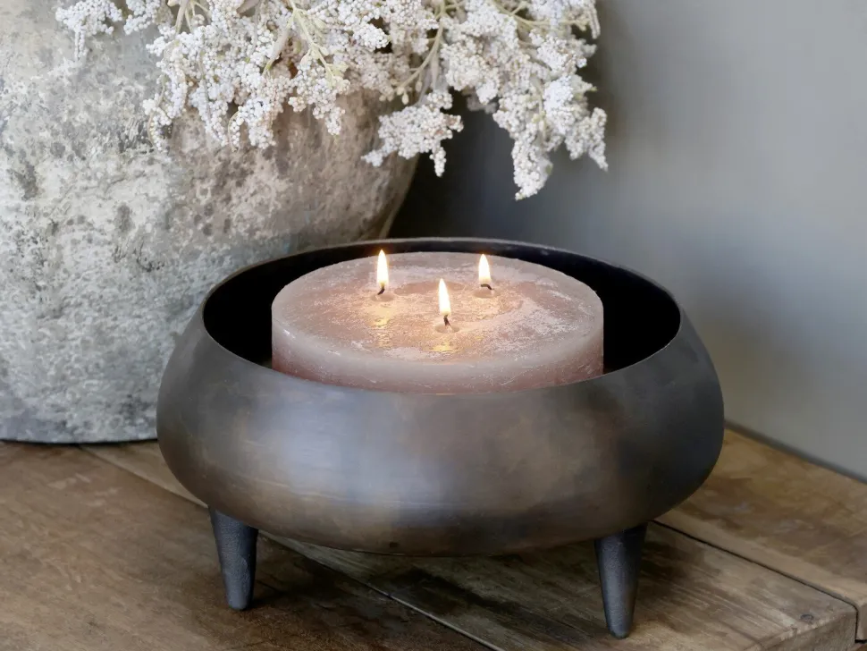 Das Arrangement ist bereits für sich genommen ein dekoratives Highlight aufgrund seiner Größe und spektakulären Form. Doch in Kombination mit Kerzen entfaltet es seine ganze Pracht – insbesondere die rustikalen Macon Stumpenkerzen mit drei Dochten von Chic Antique passen perfekt auf dieses Tablett. Da das Tischarrangement wasserdicht ist, eignet es sich auch hervorragend für Pflanzen und Blumen. Die Möglichkeiten sind vielfältig.