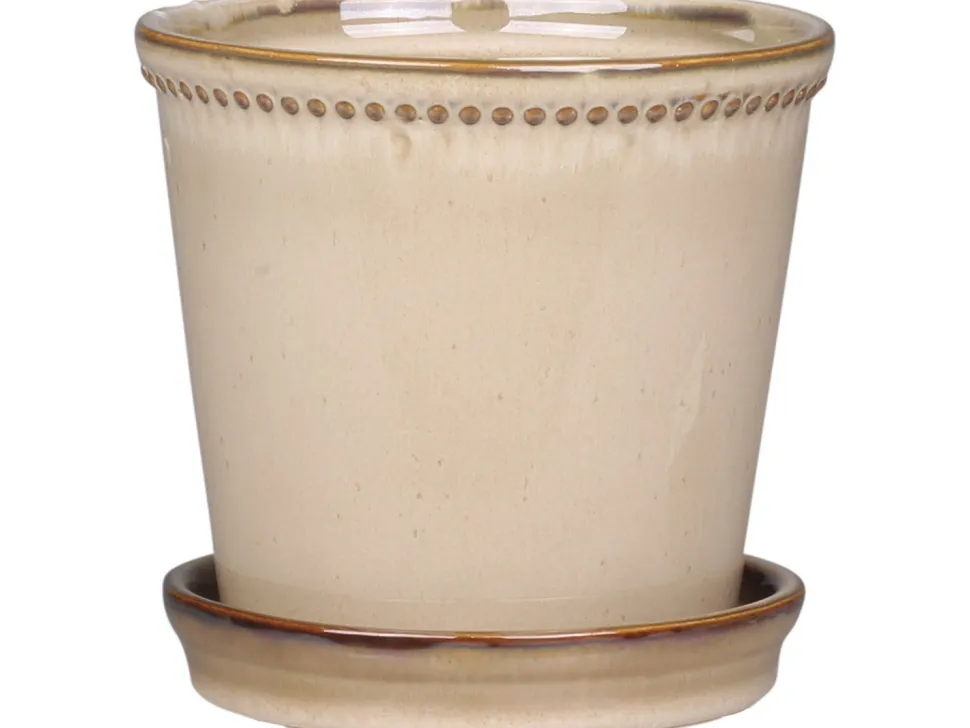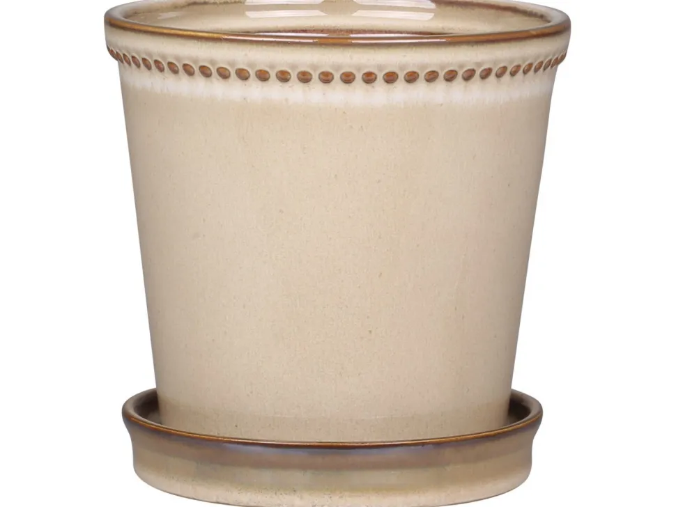 Dieser tolle Nimes Übertopf mit Perlenkante und Unterschale von Chic Antique Dänemark ist ein schönes Schmuckstück für deine Blumen und Pflanzen. Bette sie stilvoll in diese beigen Töpfe aus Keramik ein und erfreue dich an ihrem erdigen Look. Ob farbenfrohe Orchidee oder frische Grünpflanze, in diesem Topf sehen viele Pflanzen gut aus und schaffen eine natürliche Note.