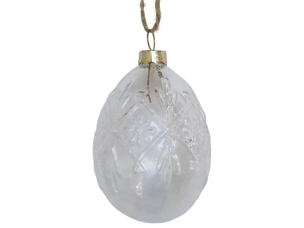 Das klare Ei von Chic Antique besticht mit einem schicken Muster, das sich wunderbar mit weitere Ostereiern kombinieren lässt. Hänge es an seinem Jutefaden auf oder integriere es nach deinem Geschmack in die Tischdekoration.