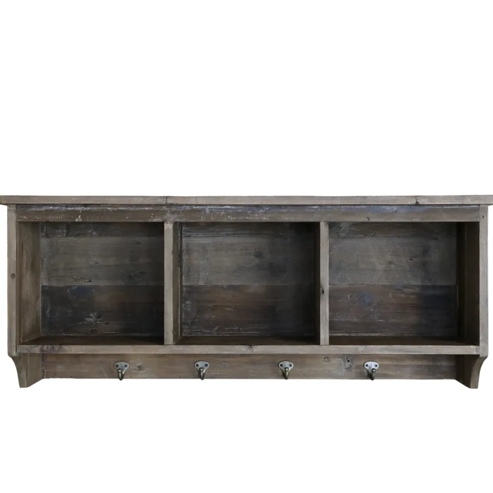 Chic Antique Regalbrett mit 3 Fächern und 4 Haken