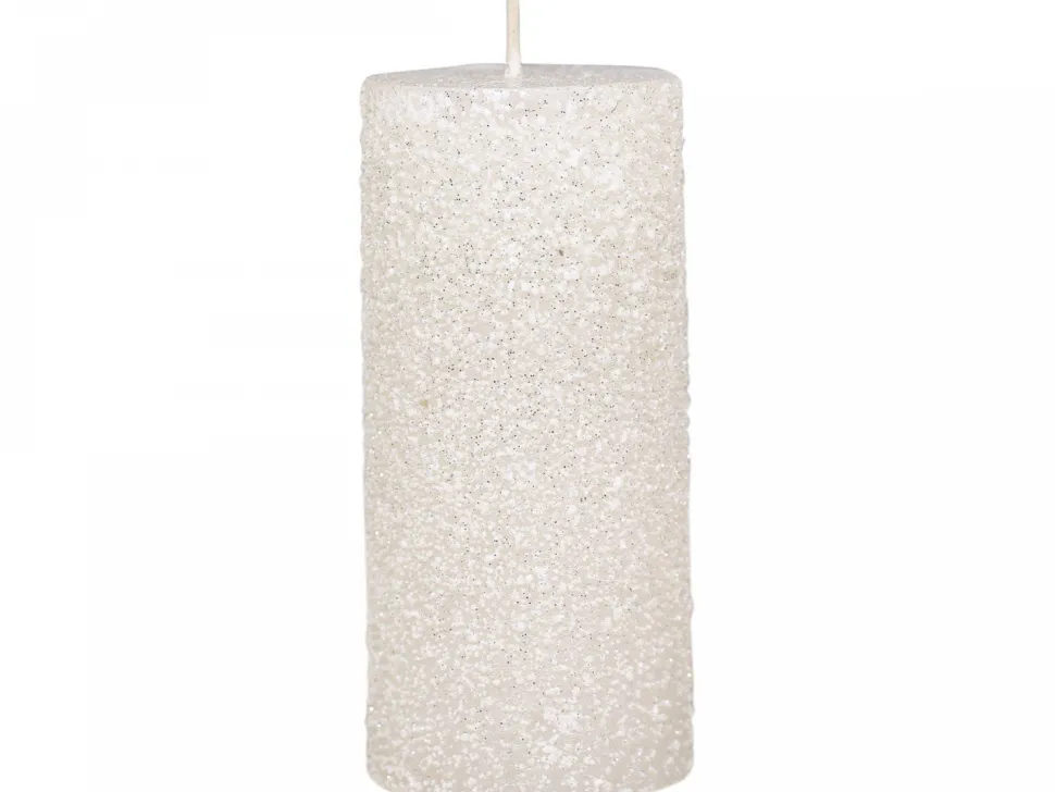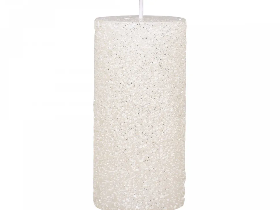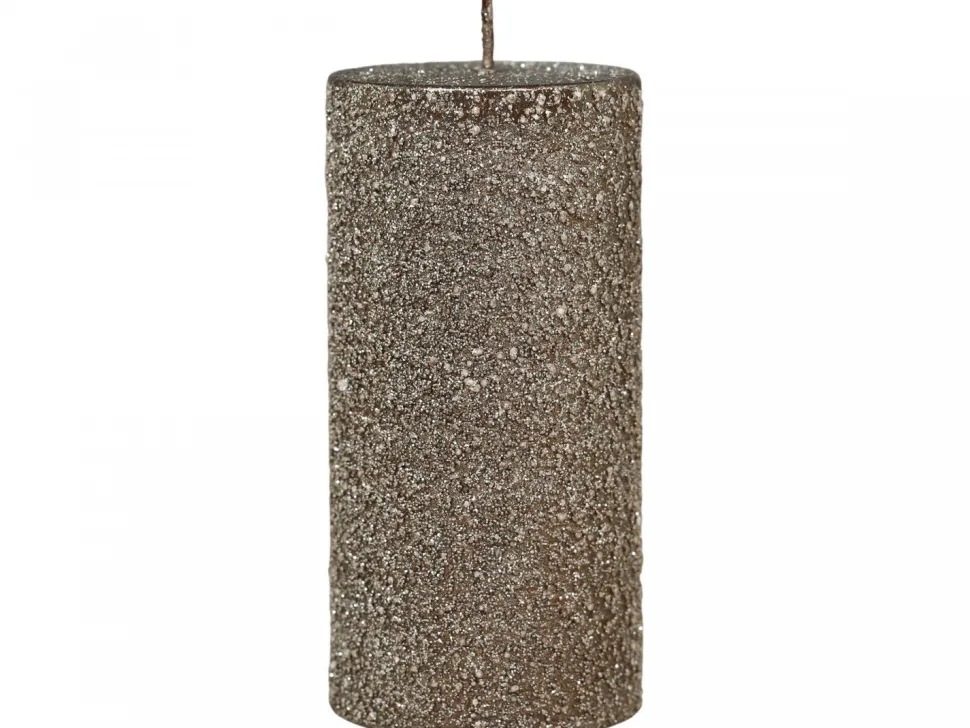 Die rustikale Stumpenkerze mit Glitzer ist in den Farben creme und mokka sowie drei verschiedenen Größen erhältlich und besitzt eine Brenndauer von ca. 67 Stunden.