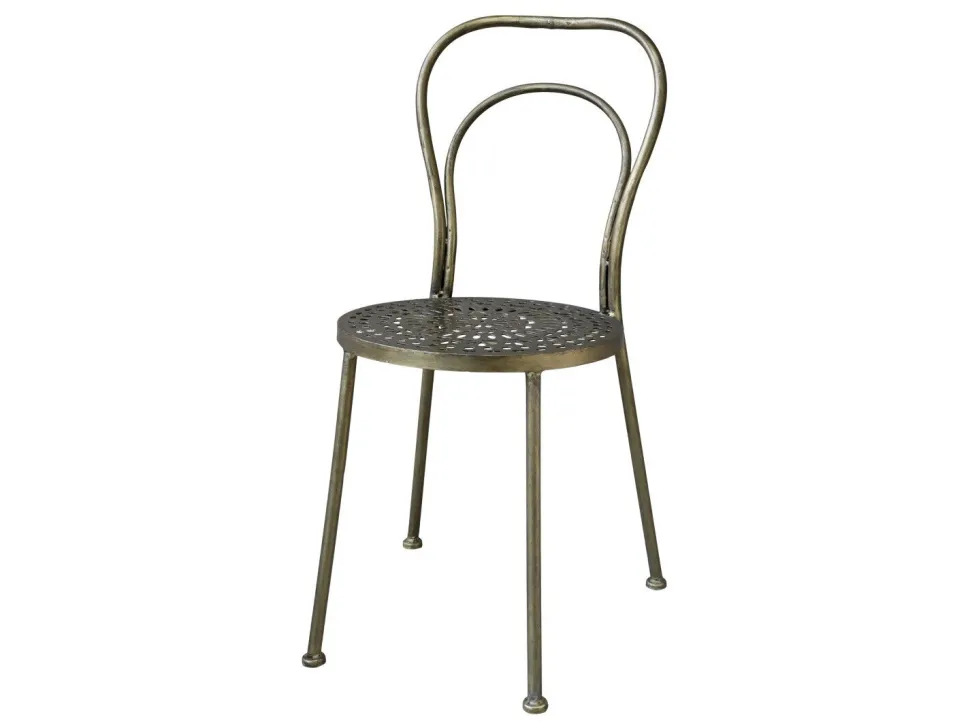 Der moderne Messing-Look mit orientalischem Muster in der Sitzfläche verleiht diesem Stuhl seinen unglaublichen Charme. Obwohl der Stuhl schlicht gehalten ist, ist er ein stilvoller Blickfang und passt wunderbar ins Wohn- oder Esszimmer.
