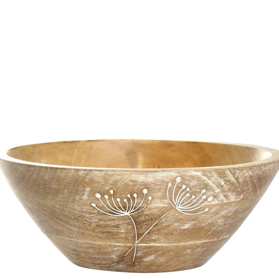 Stilvoll verzierte Salatschüssel aus hochwertigem Mangoholz. Die beste Option um deine Salate anzurichten.