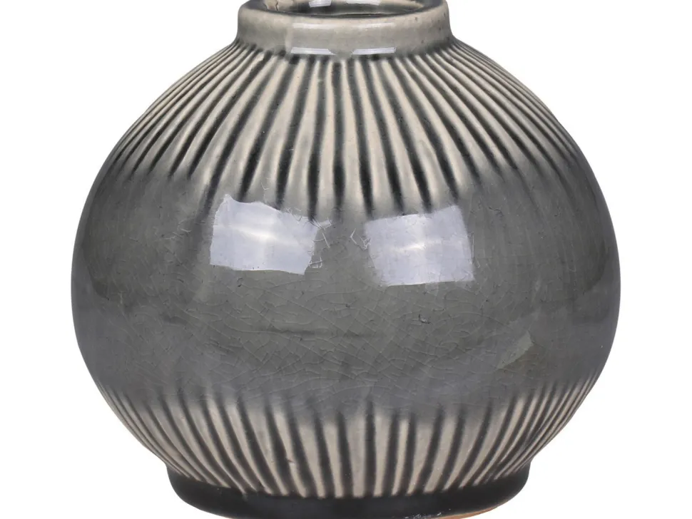 Sieht diese kugelige Vase mit ihrem gestreiftem Muster nicht einfach fantastisch aus? Die Vase gehört zu den Keramik Produkten von Chic Antique und zaubert in grauer Farbe mit weissen Akzenten einen herrlichen Look auf deine Fensterbank, das Nachtschränkchen oder die Kommode im Eingangsbereich.
