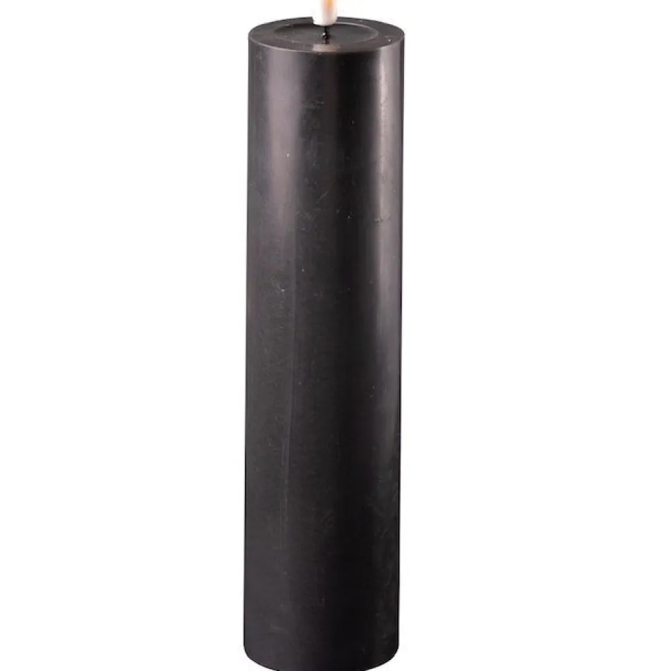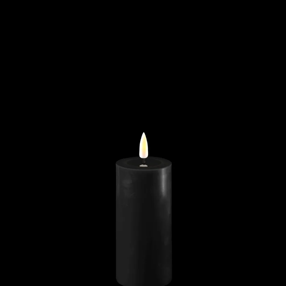 Diese wunderschöne schwarze LED Stumpenkerzen aus Kunstoff von DELUXE Homeart aus Dänemark hat eine täuschend echte Real Flame Flamme, die flackert.