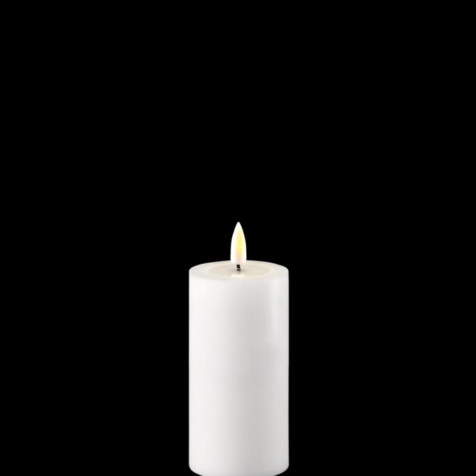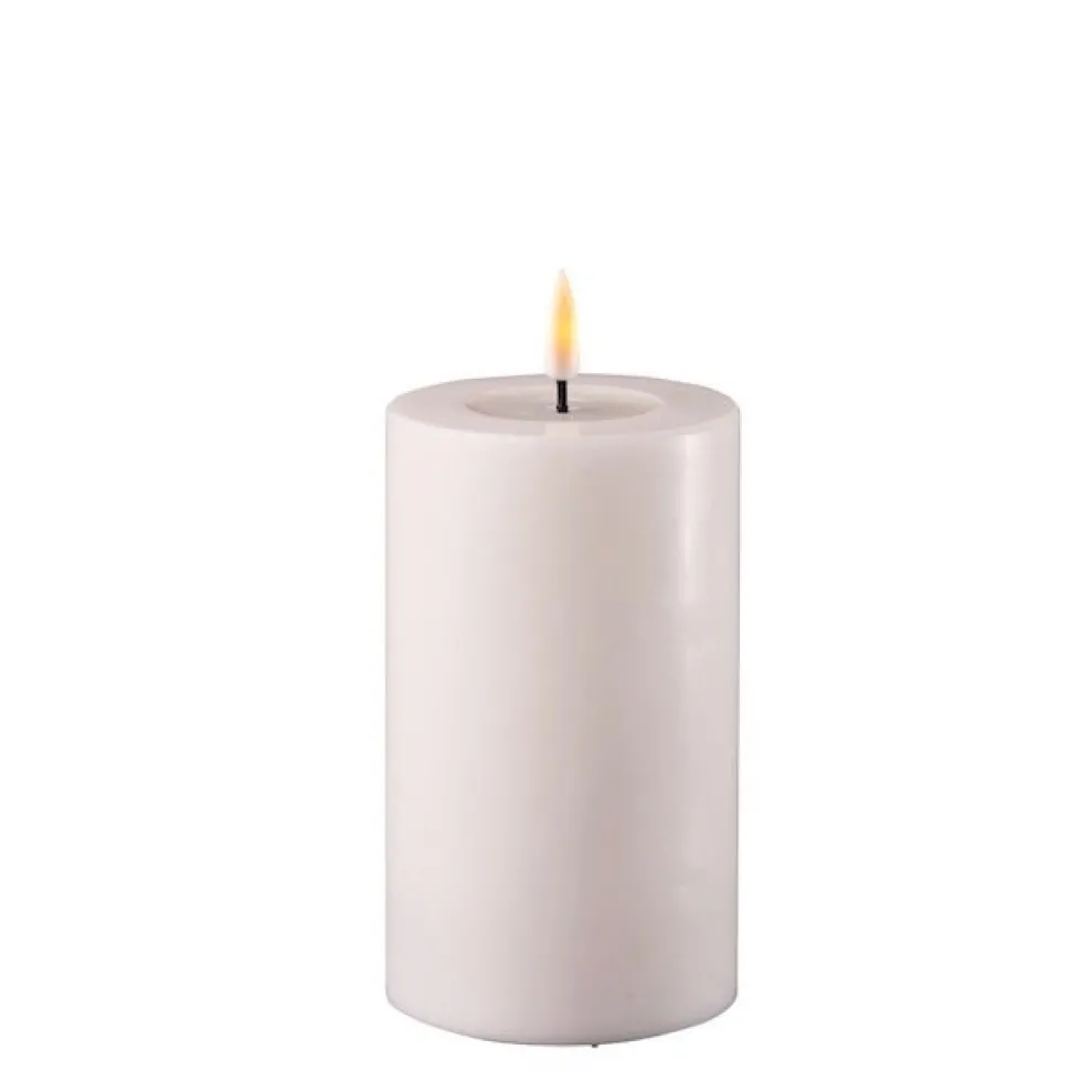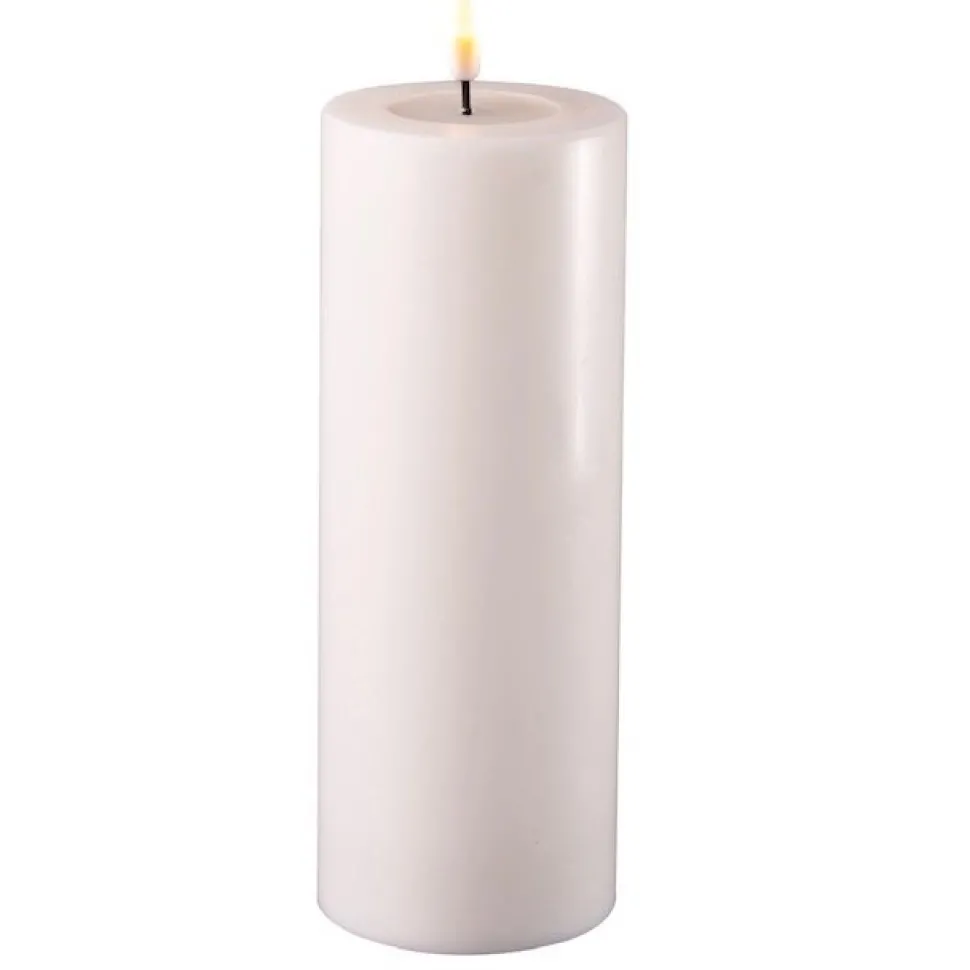 Diese wunderschöne weiße LED Stumpenkerzen aus Kunstoff von DELUXE Homeart aus Dänemark hat eine täuschend echte Real Flame Flamme, die flackert.