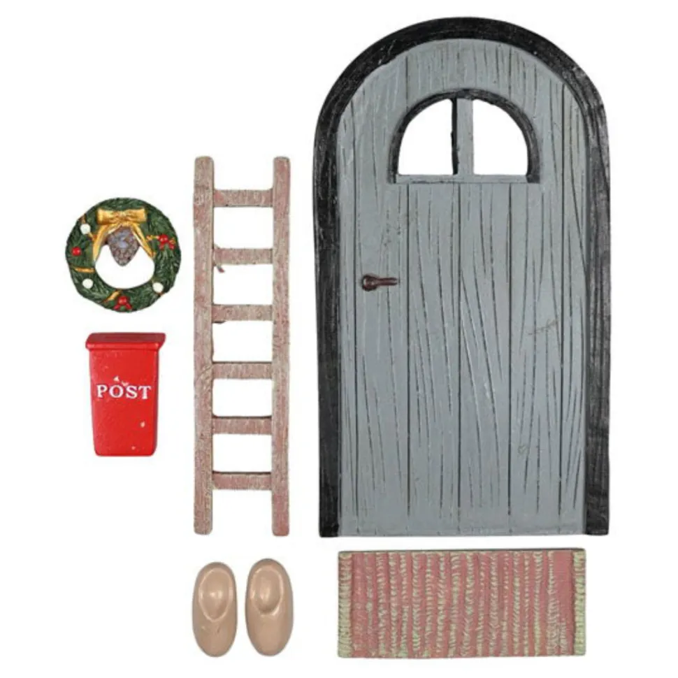 Wichteltür Set grau mit Zubehör. Ideal für die Weihnachtszeit – von Det Gample Apotek aus Dänemark.