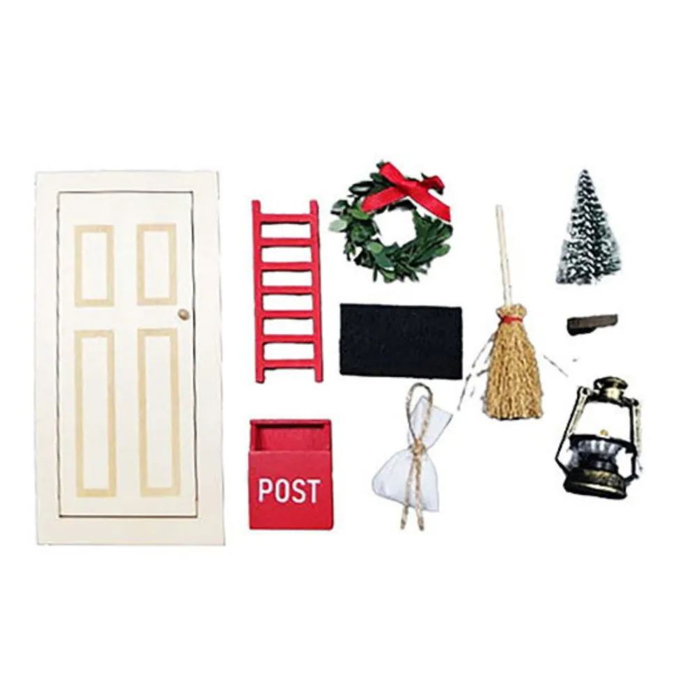 Wichteltür Set aus Holz, weiße Tür mit Zubehör. Ideal für die Weihnachtszeit – von Det Gample Apotek aus Dänemark.