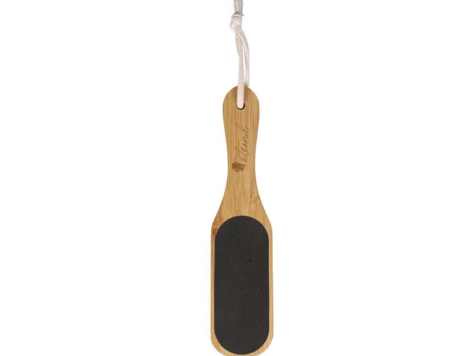 Die Fußfeile aus Bambus von Chic Antique ist für die regelmäßige Fußpflege geeignet und kann handlich mit einer Länge von 24 cm für die Hornhautentfernung eingesetzt werden.