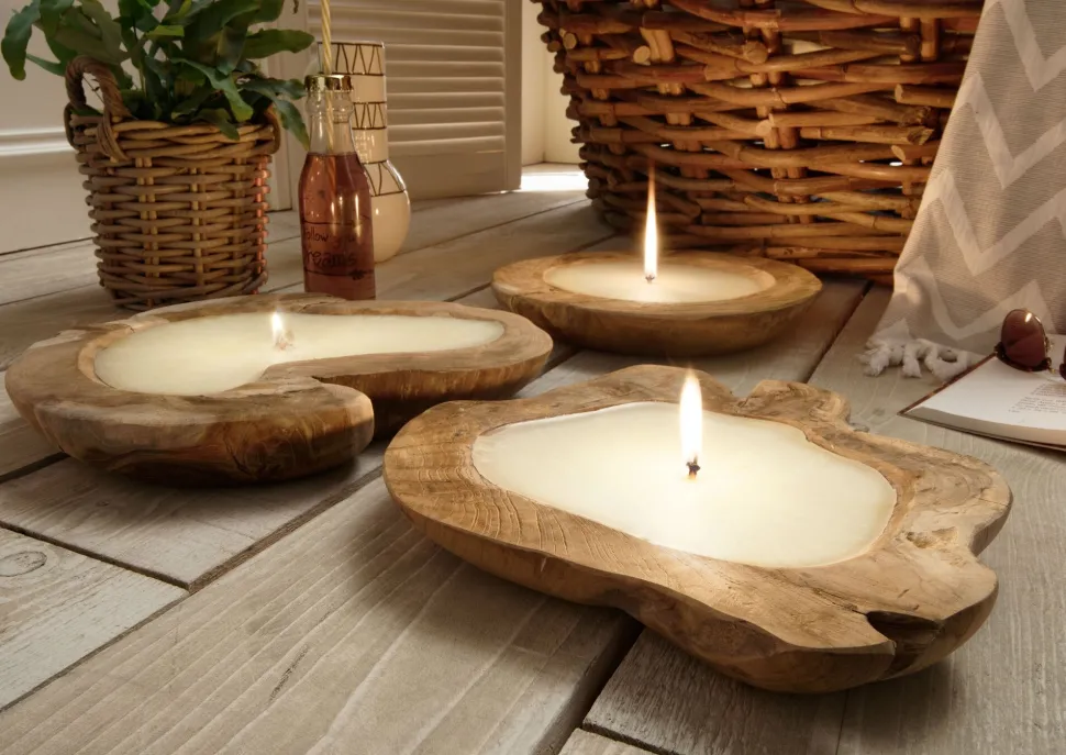 Wunderbare Kerze in Teakholzschale natur, ca. 30 cm aus der Faktorei.