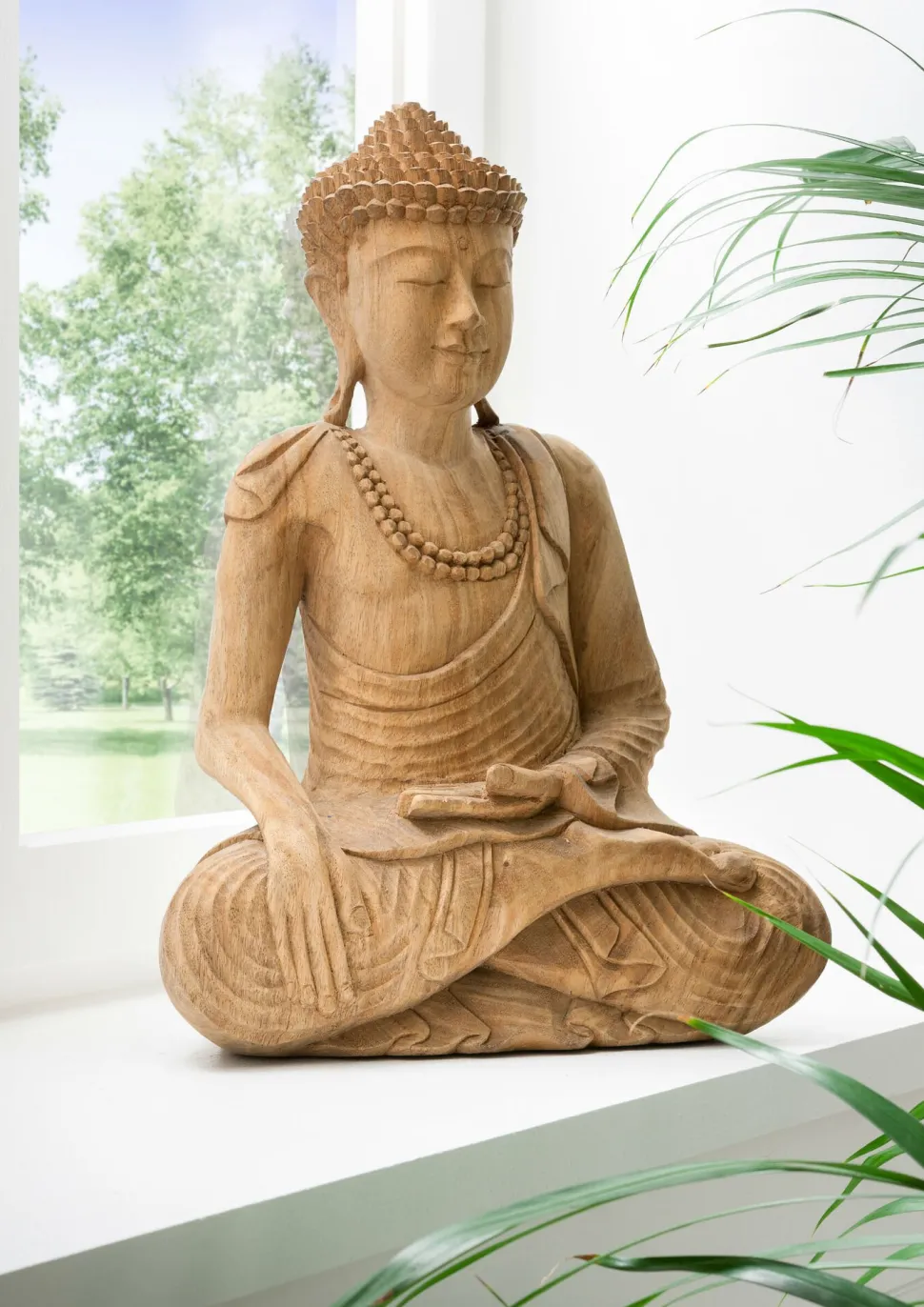 Wunderschöne Unikat-Deko-Figur Buddha handgearbeitet aus Suar Holz in der Faktorei.