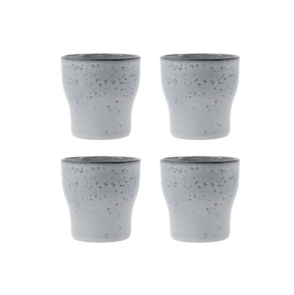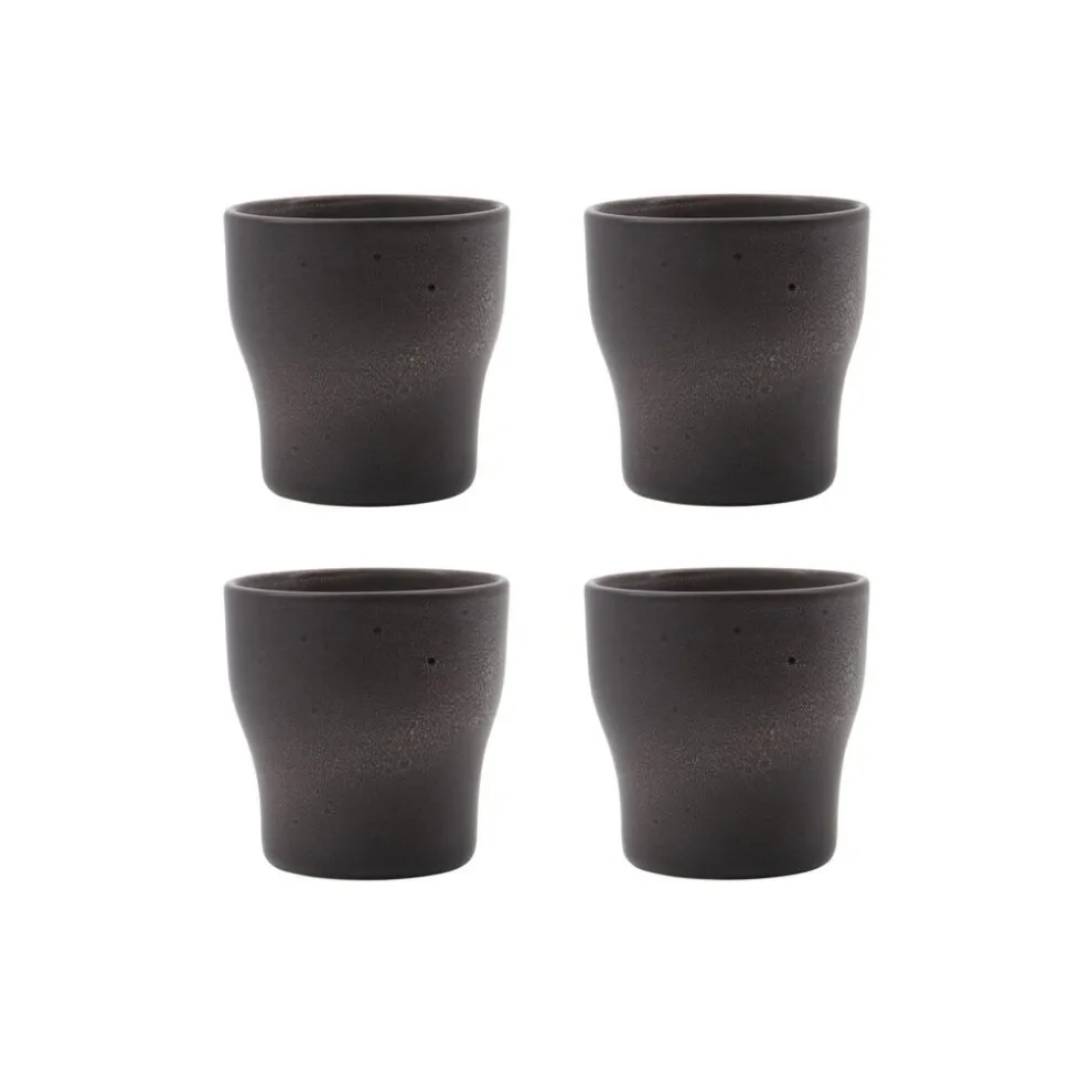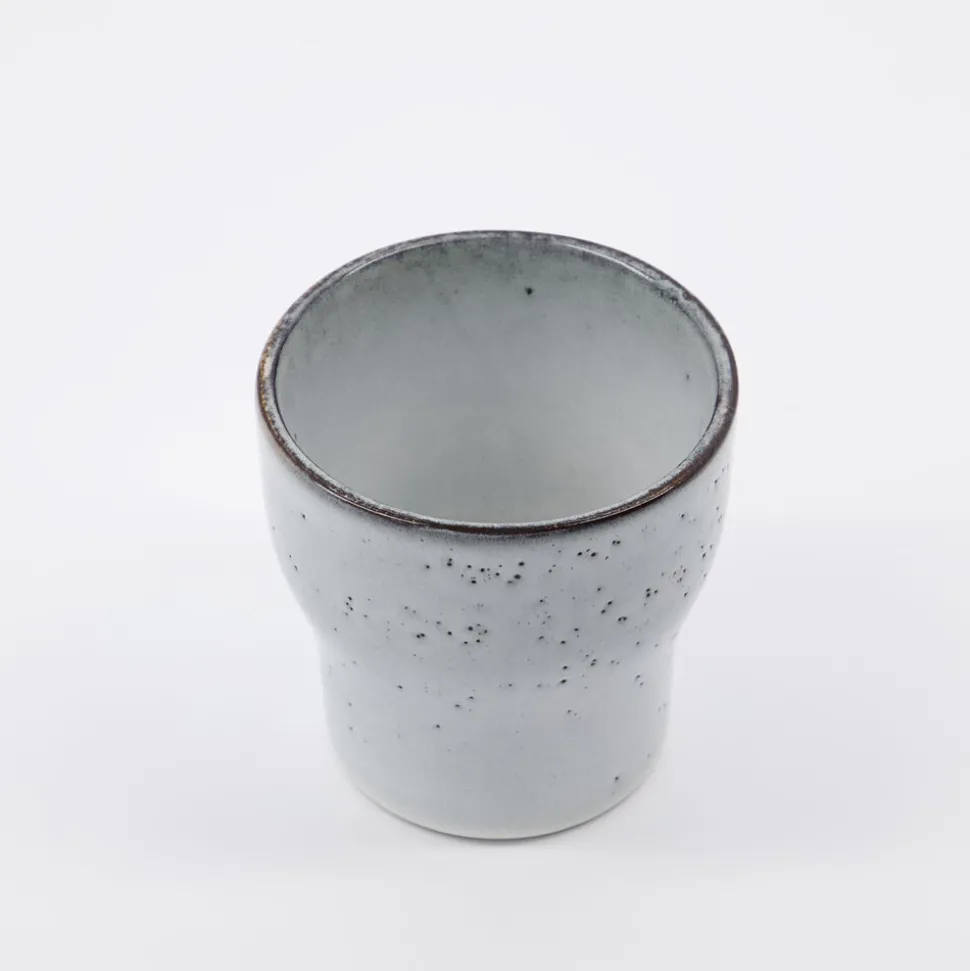 Die Steingut-Becher von House Doctor wurden mit einer grauen Glasur mit gewollten Unvollkommenheiten überzogen und strahlen einen rustikalen und lässigen Look aus. Statt eines Henkels sorgt die zulaufende Form dafür, dass du die Becher leicht greifen und halten kannst.