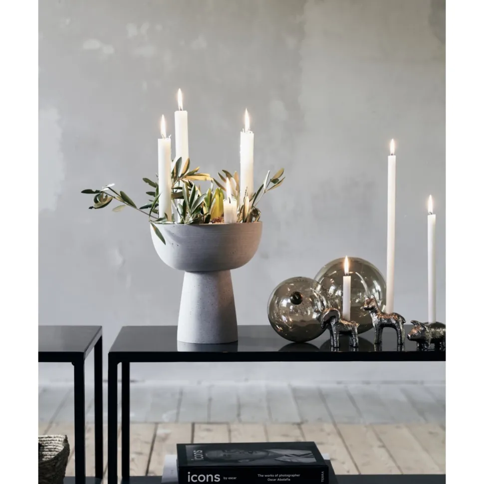 Passend für Ø2,2 cm Stabkerzen oder LED-Kerzen. Zement.