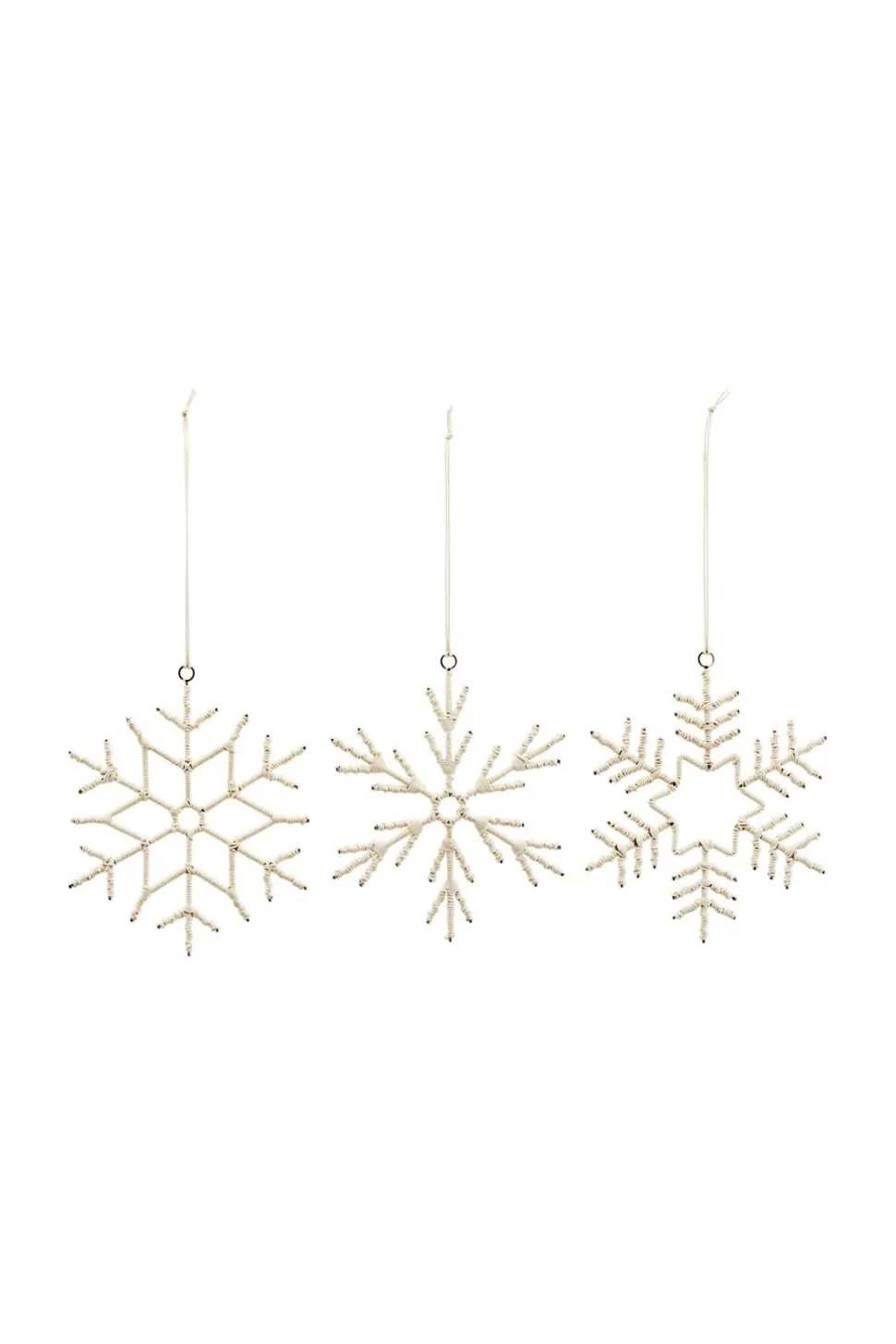 Dieses Set von House Doctor besteht aus drei wunderschön geformten Schneeflocken und kann sich an jedem Weihnachtsbaum sehen lassen. Die Ornamente sind aus Eisen und mit weißer Baumwollschnur umwickelt, wodurch sie einen einzigartigen Look erhalten. Besonders in Kombination mit anderen Kugeln, Materialen und Formen sind diese Schneeflocken an jeden Weihnachtsbaum gut aufgehoben und verleihen diesem eine sanfte Abwechslung. Schaffe dir dein eigenes Winter Wonderland mit diesen Schneeflocken Aufhängern und verziere auch andere Bereiche wie zum Beispiel dein Fenster damit.