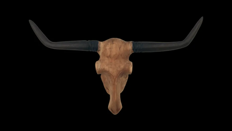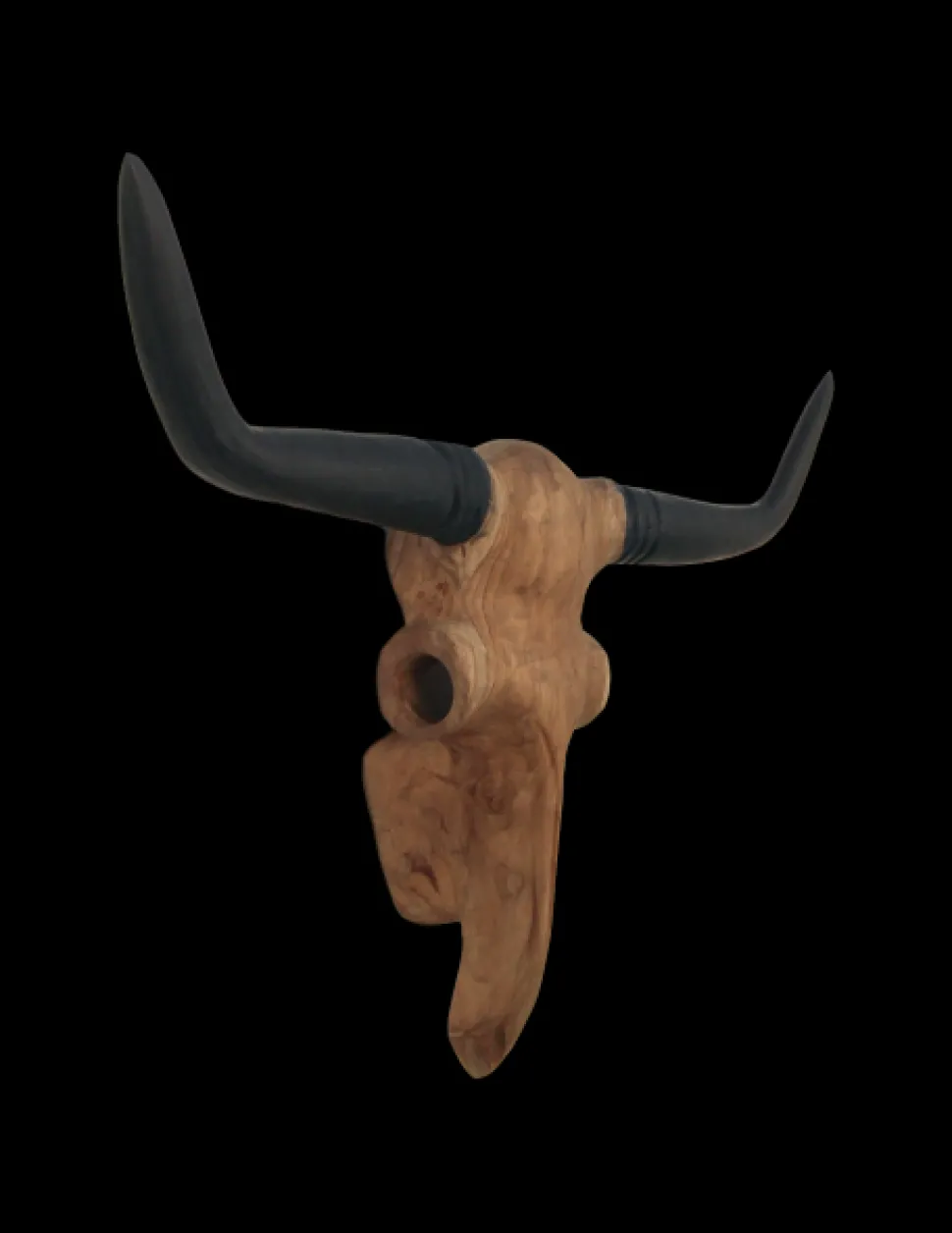 Diese Wanddekoration in Form eines Büffelkopfs mit langen geschwungenen Hörnern besticht durch ihre Ausführung in Vintage-Optik und bringt individuellen Stil in deine Inneneinrichtung.