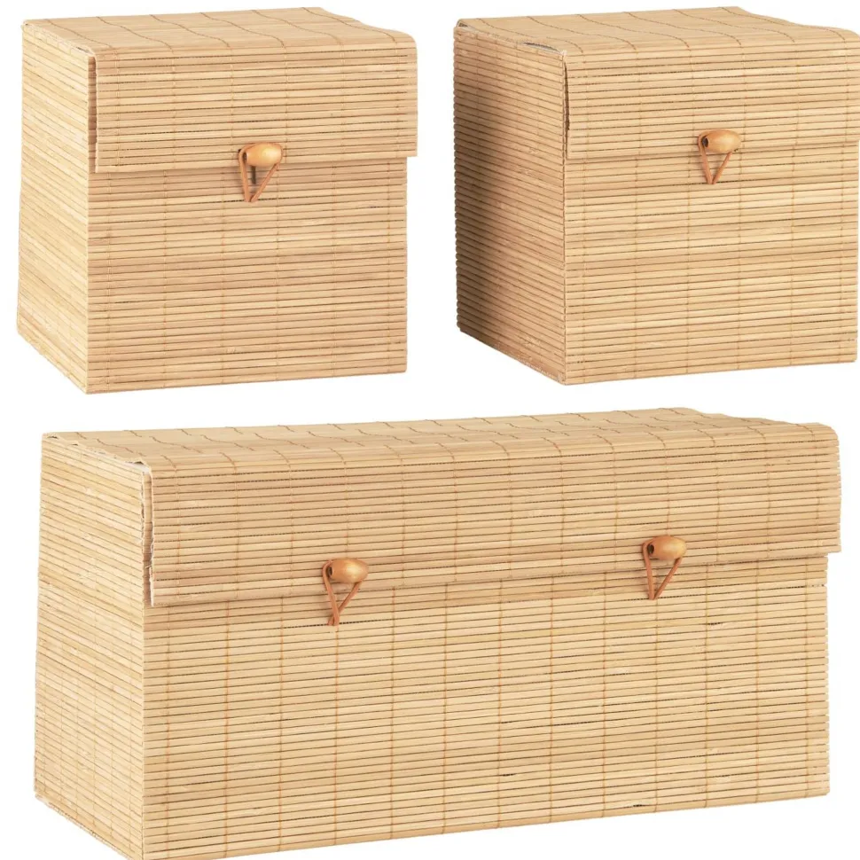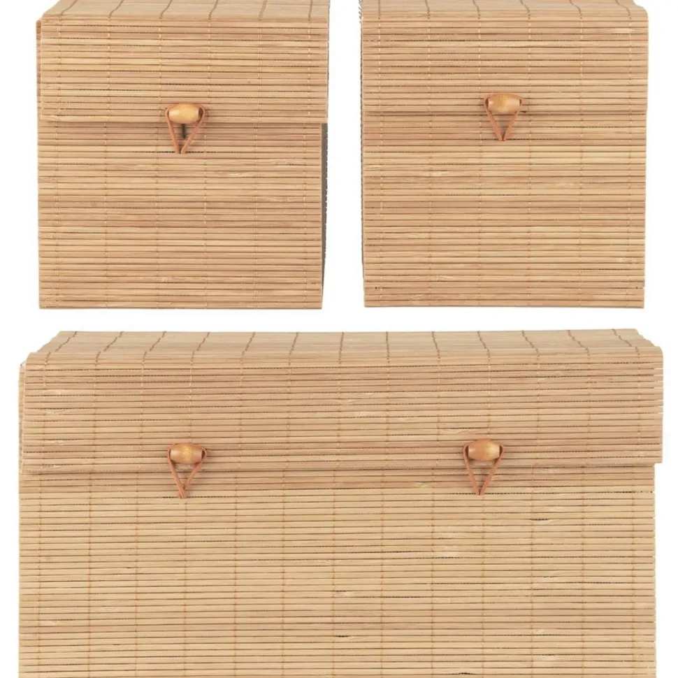 3er Schachtelsatz mit Bambusdeckel, 1 länglich, 2 quadratisch von IB Laursen aus Dänemark.