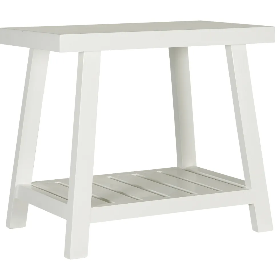 Diese Bank mit Ablage ist aus Holz gefertigt und gehört zur Gilleleje-Serie. Die weiße Farbe und das schlichte Design passen perfekt in ein Sommerhaus oder verleihen Ihrer Einrichtung eine helle und leichte Atmosphäre.