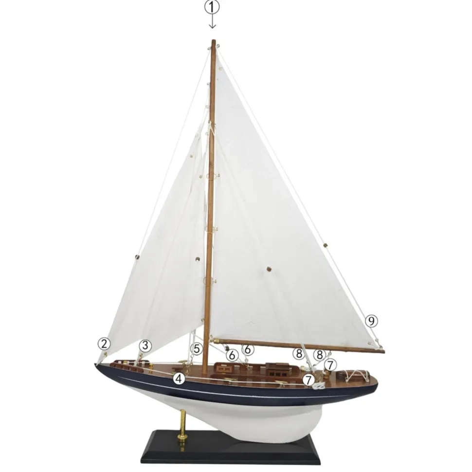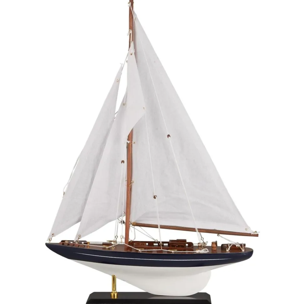 Elegantes Segelschiff mit Rumpf und Segeln, das einen raffinierten und zeitlosen Look bietet. Ein schönes und dekoratives Detail, das jedem Raum einen Hauch von Meer verleiht.