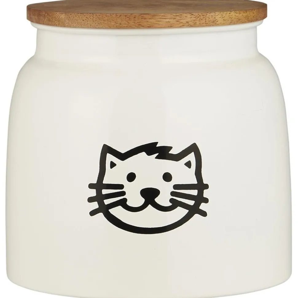 Dose für Katzenfutter weiss mit Katzenmotiv und Holzdeckel von IB Laursen aus Dänemark. Erlebe eine gemütliche Fütterungszeiten mit dieser funktionalen und schönen Katzenfutterdose. Die Dose hat einen schönen Deckel aus Mangoholz, und das lächelnde Katzen-Gesicht auf der Vorderseite fügt nicht nur einen Hauch von Charme hinzu, sondern zeigt auch deutlich, dass hier das Lieblingsfutter Ihrer Katze aufbewahrt wird. Die Dose ist Teil unserer kleinen Serie von Haustierprodukten, zu der auch ein Katzenfressnapf zum Servieren des Futters gehört.