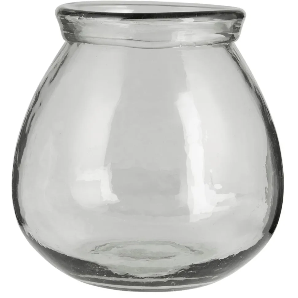 Glas. Mundgeblasene Vase aus klarem Glas mit großer Öffnung und breiter, abgerundeter Form. Das schlichte Design der Vase unterstreicht die natürliche Eleganz des Glases.