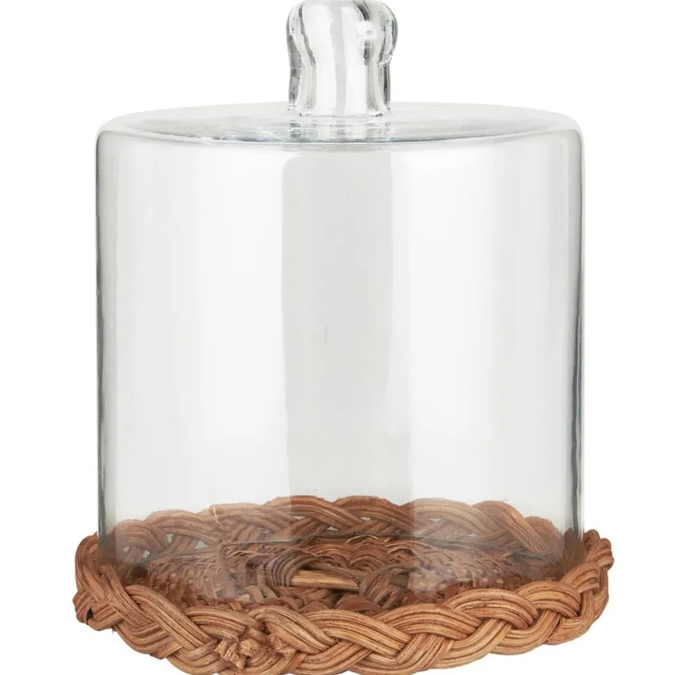 IB Laursen Glasglocke mit Rattanboden mundgeblasen