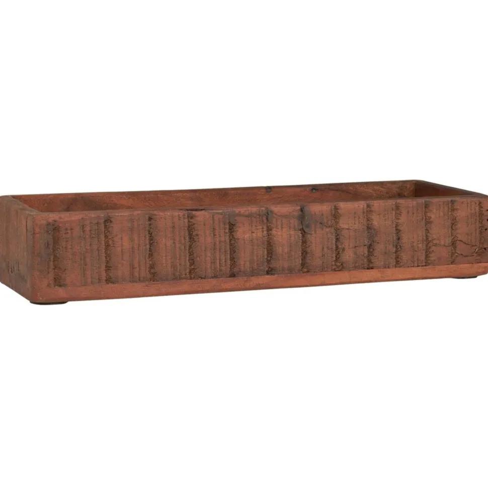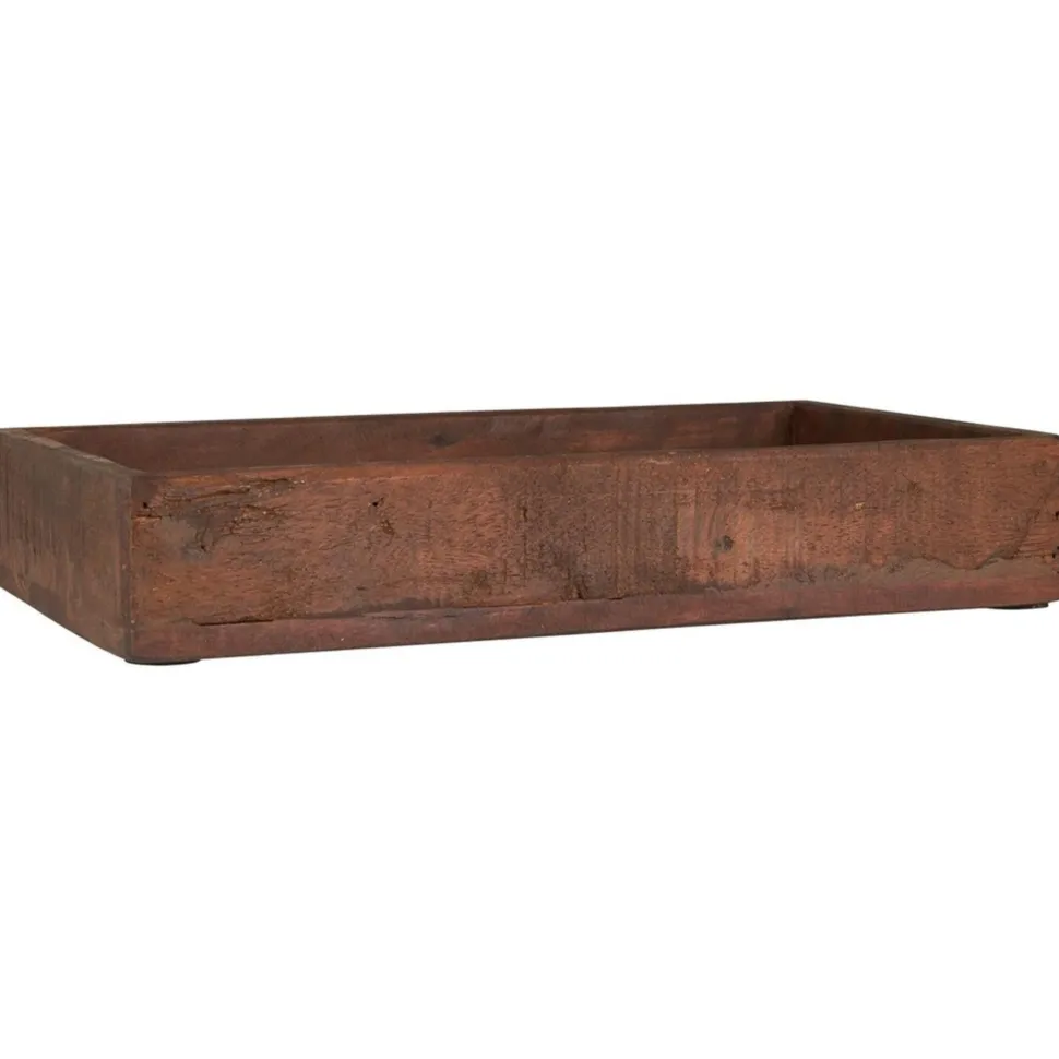 Die Kiste ist in Indien aus recyceltem Abbruchholz hergestellt, wodurch jede Kiste in Form und Farbe einzigartig ist.