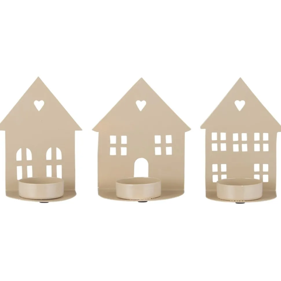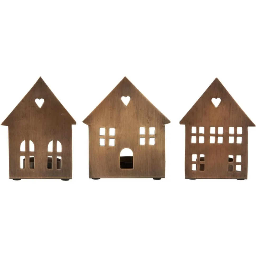 Kerzenhalter für Teelicht, stehende Hausfassade im 3er Set von IB Laursen aus Dänemark.