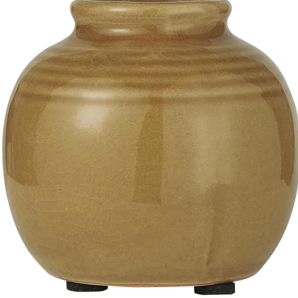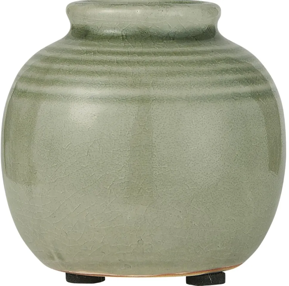 Die Keramik Vase besitzt zudem eine krakelierte Oberfläche, also ein feines Riss- oder Sprungnetz, welches ihr einen besonderen Touch verleiht.