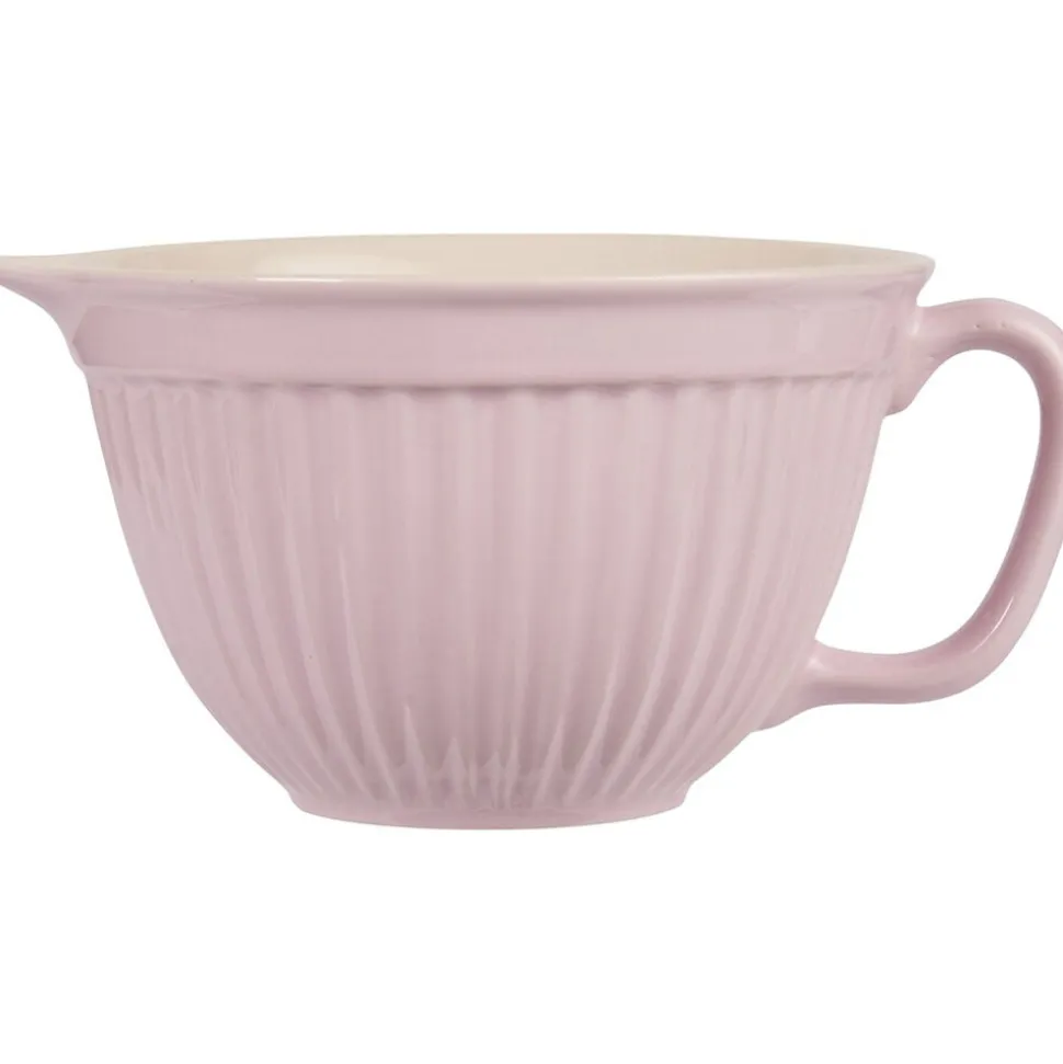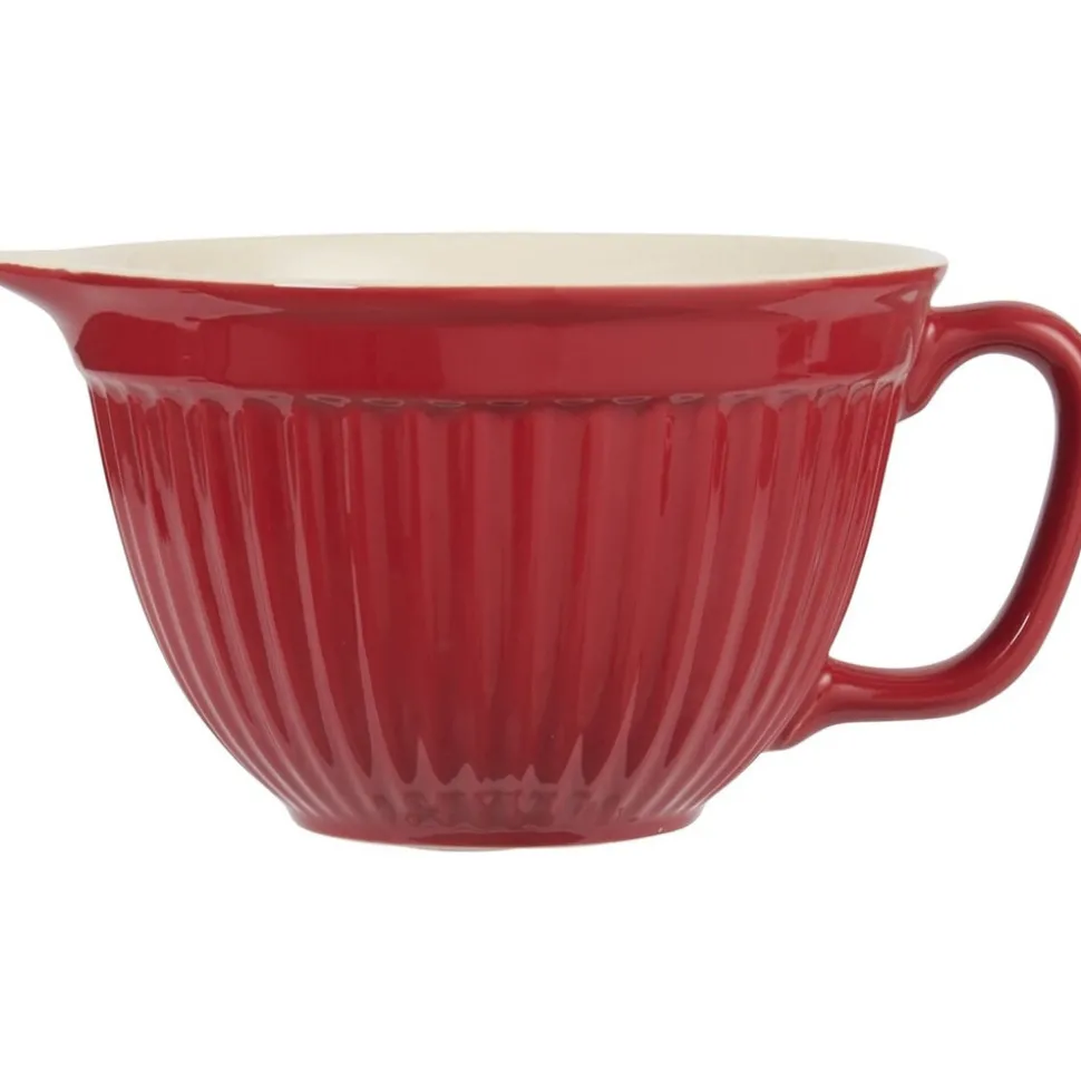 Die mit Henkel und Ausguss versehene Rührschüssel aus Steingut ist ein praktischer Helfer beim Kochen und Backen.