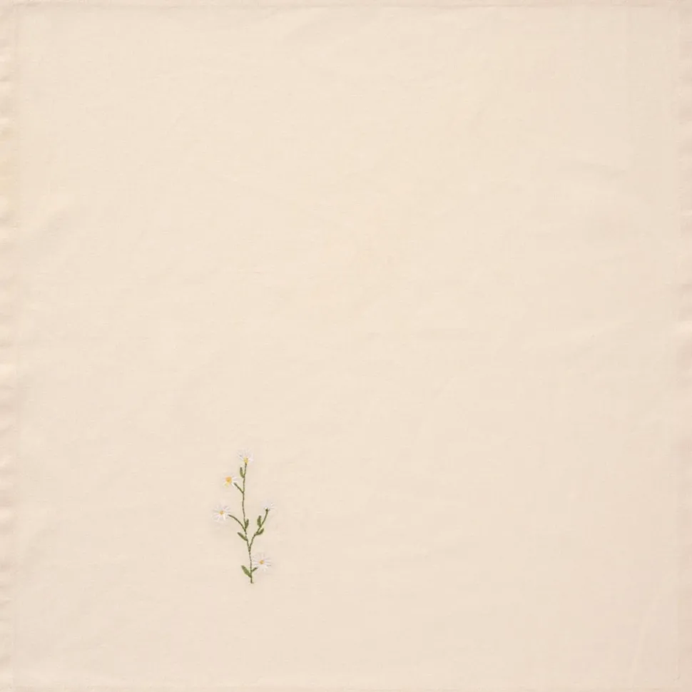 Charmante Stoffserviette in der beliebten Butter Cream-Farbe mit einer entzückenden Stickerei von Blumen, die Wärme und Freude auf den Tisch bringen. Perfekt, um eine helle und sommerliche Atmosphäre zu schaffen und jede Mahlzeit besonders zu machen.