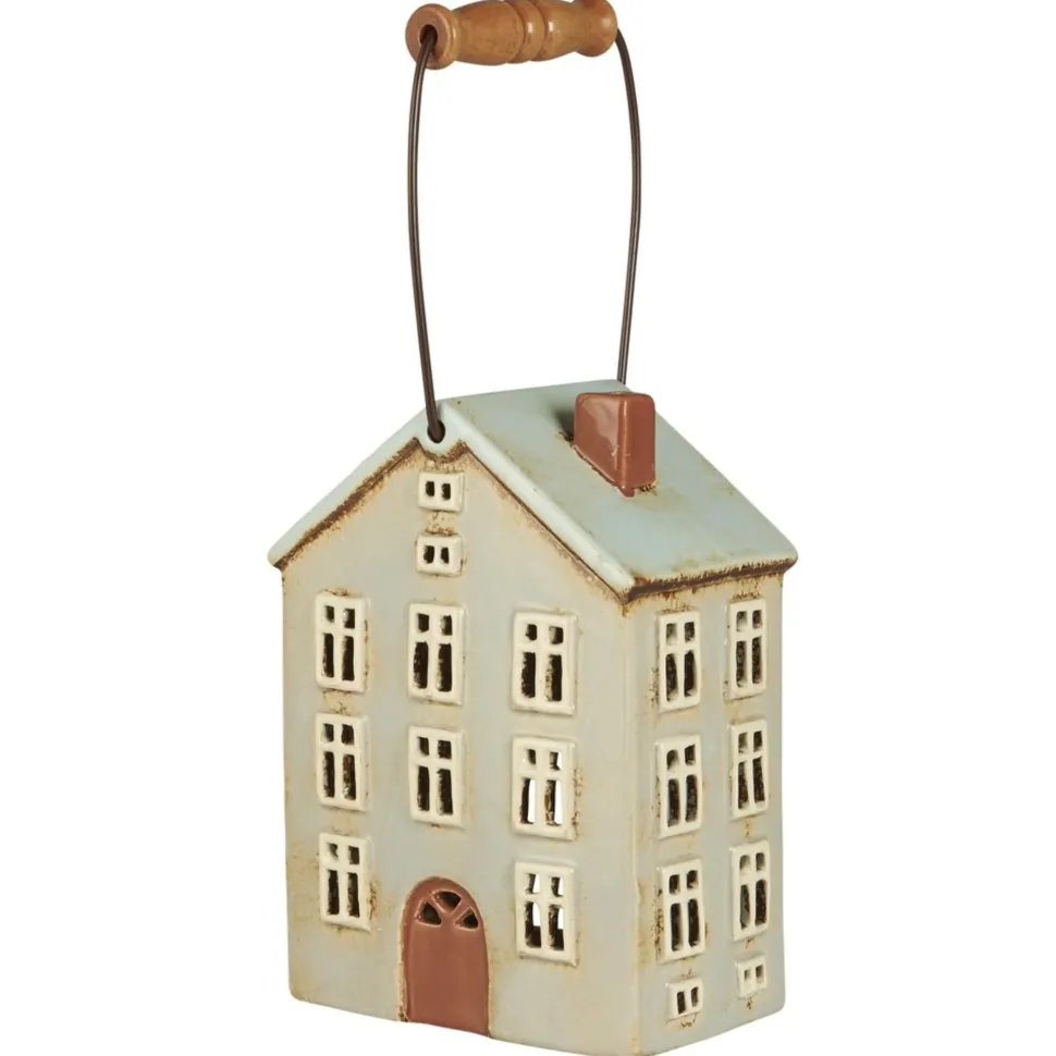 IB Laursen Teelicht Häuschen aus Keramik Nyhavn mit Holzgriff