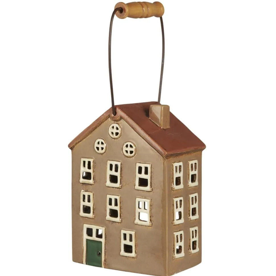 Teelicht Häuschen aus Keramik Nyhavn mit Holzgriff von IB Laursen aus Dänemark.
