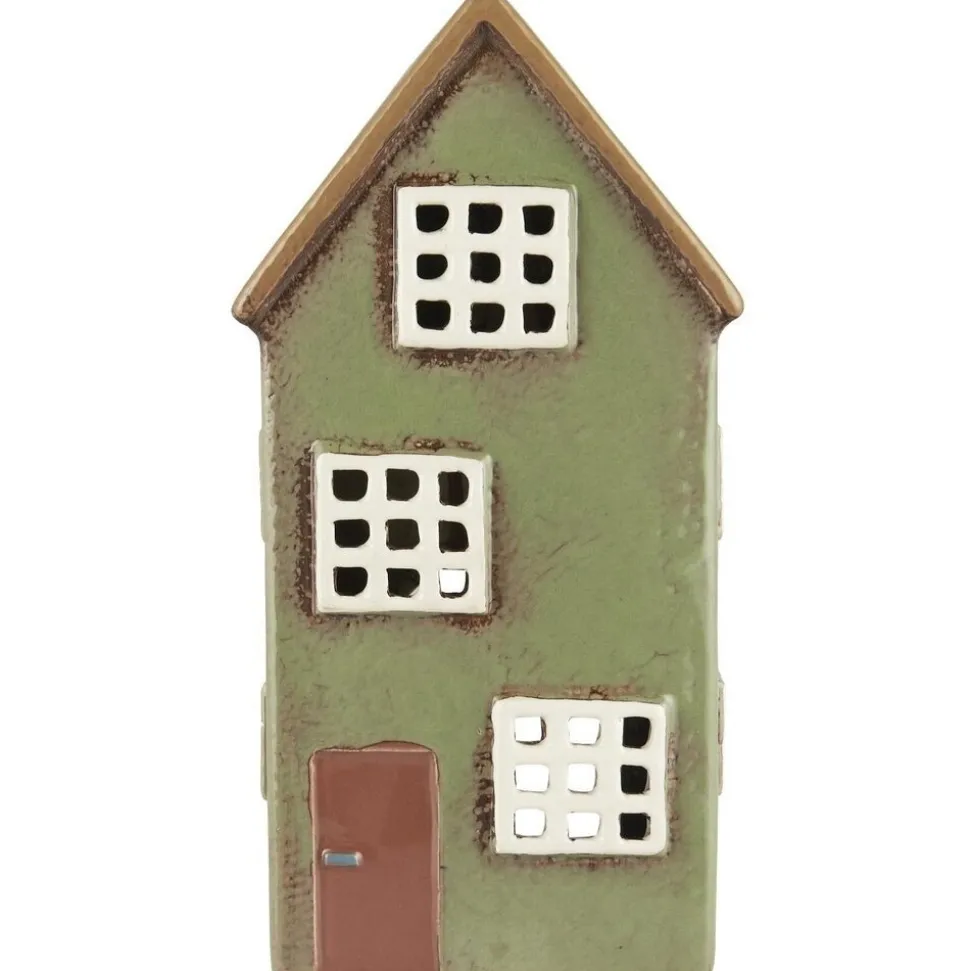 Teelichthaus aus Keramik Nyhavn braune Tür von IB Laursen aus Dänemark.